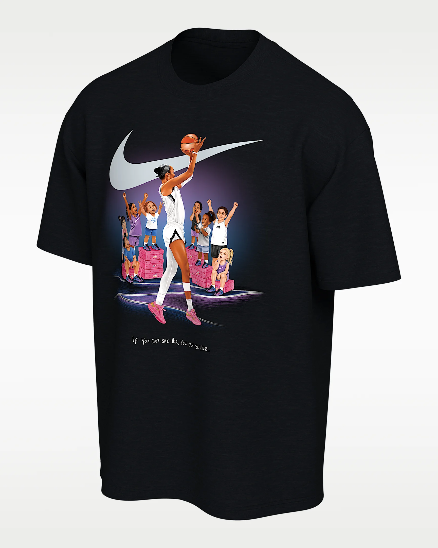 Everyday comfort meets unapologetic attitude. With structured, heavyweight cotton and a roomy fit, this tee honors the strength of A'ja's game in a way that's pure A'ja: fearless, confident and always authentic. Benefits - A roomy fit keeps you comfortable throughout the day. - Built around the star she's always drawn into her signature, A'ja's logo is strong, bold and playful—just like the energy she brings to the court. Product Details - 100% cotton - Machine wash - Imported - Shown: Black - Style: JA6463-010 SIZE & FIT Loose fit: roomy and relaxed