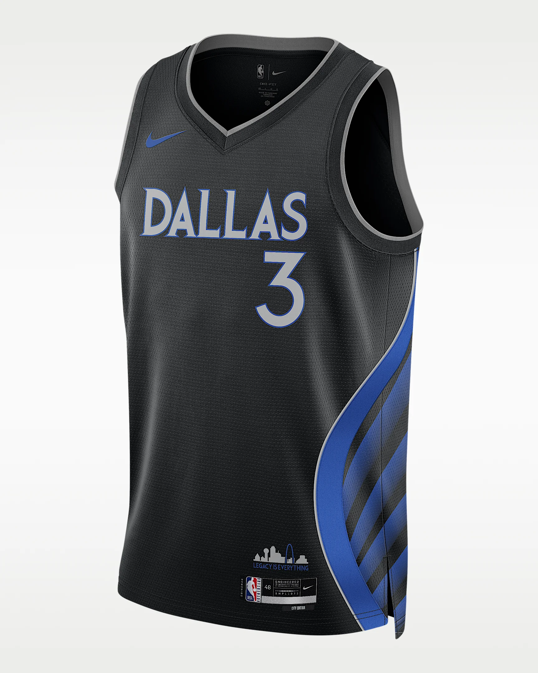Dallas's nickname, the Pegasus City, didn't materialize out of thin air. Or did it? In 1934, the people of Dallas installed a giant Pegasus sign atop the tallest building west of the Mississippi River. Rotating 450 feet up and visible from up to 75 miles away, the red neon Pegasus became a symbol of the city and a wayfinding point for drivers and pilots alike. As Dallas grew and prospered throughout the 20th Century, the Pegasus continued to stand watch over downtown. The 2025-26 Dallas Mavericks City Edition jersey honors the Pegasus, the classical mythological creature that serves as a beacon of hope and progress. This version, however, features Mavericks’ neon blue wings soaring through the black sky, much like the team on game night. The name Dallas appears in classic Greek type across the chest. Product Details - 100% polyester - Machine wash - Imported - Shown: Black - Style: HM5978-014 SIZE & FIT Standard fit: easy and traditional