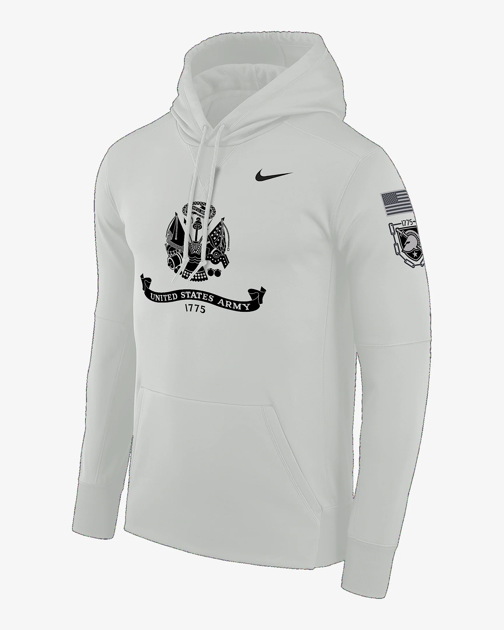 Gear up and stay warm while supporting the Army Black Knights. This pullover hoodie combines cozy fleece with heat-managing technology to help keep you comfortable all game long. Benefits - Nike Therma-FIT technology helps manage your body’s natural heat to help keep you warm in cold-weather conditions. - Soft, midweight fleece adds warmth without the bulk. Product Details - 100% polyester - Front pocket - Hood with drawcord - Machine wash - Imported - Shown: Grey - Style: M41563AN25-GRY