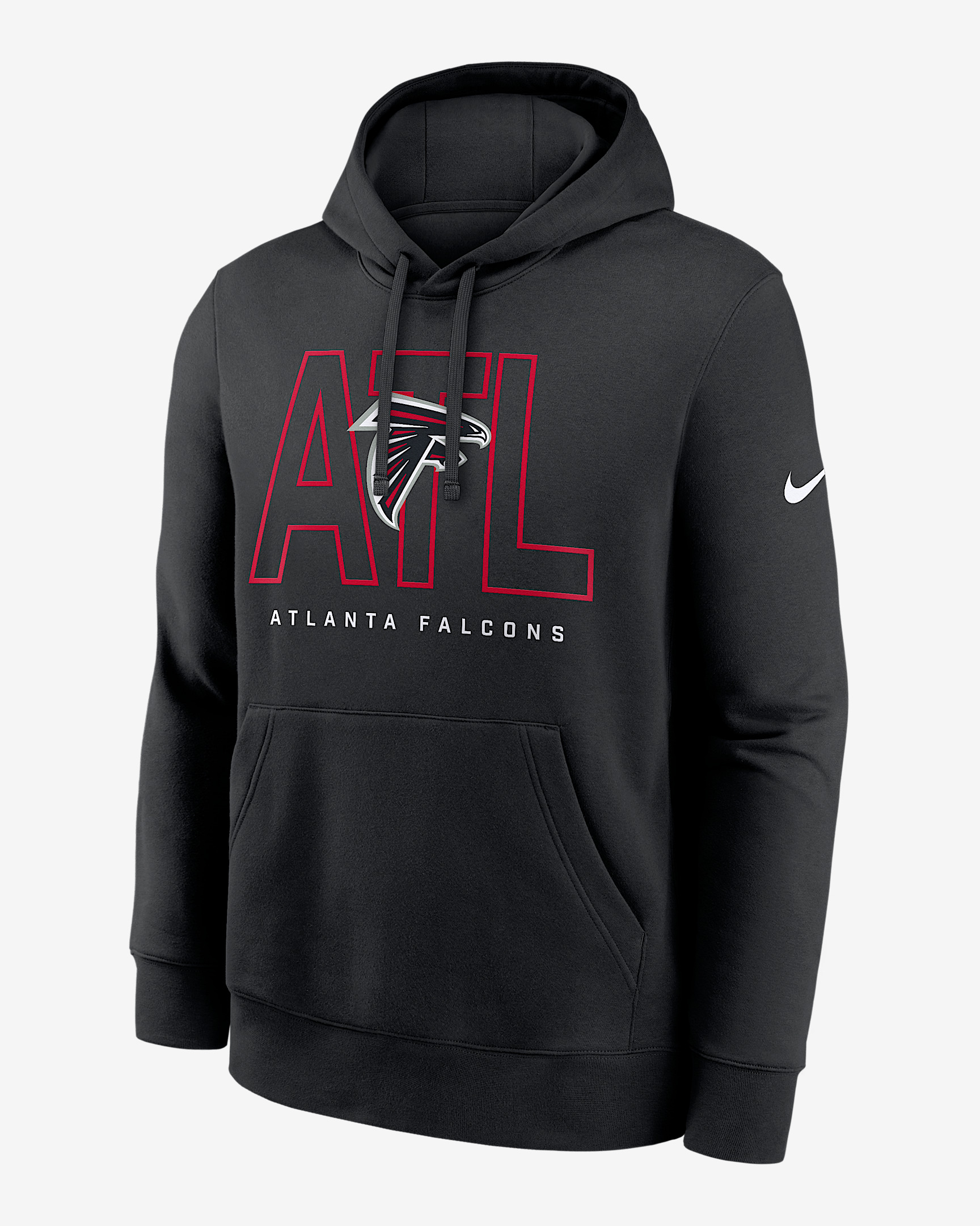 Designed with bold team graphics, this Busted Play Club Hoodie features a cozy fleece lining to help you comfortably support the Atlanta Falcons in chilly temperatures. Product Details - Front pocket - Hood with drawstring - 82% cotton/18% polyester - Machine wash - Imported - Shown: Black - Style: NKDK00A96-E7N