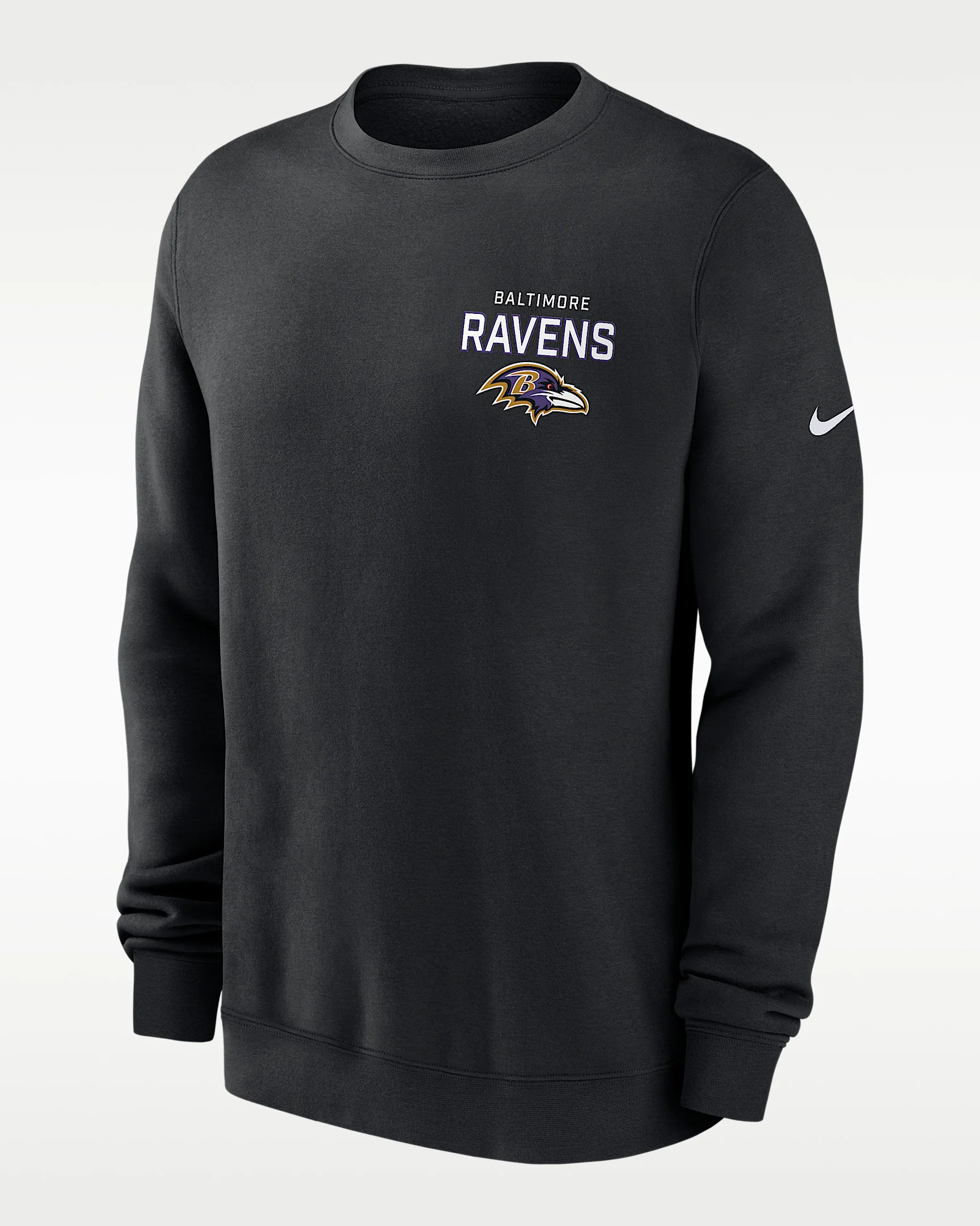 This Draw Block Club Crew brings a traditional look to your Baltimore Ravens wardrobe. It features a soft fleece lining to help keep you warm and team details for a game-day aesthetic. Product Details - 82% cotton/18% polyester - Machine wash - Imported - Shown: Black - Style: NKPV00A8G-KU0