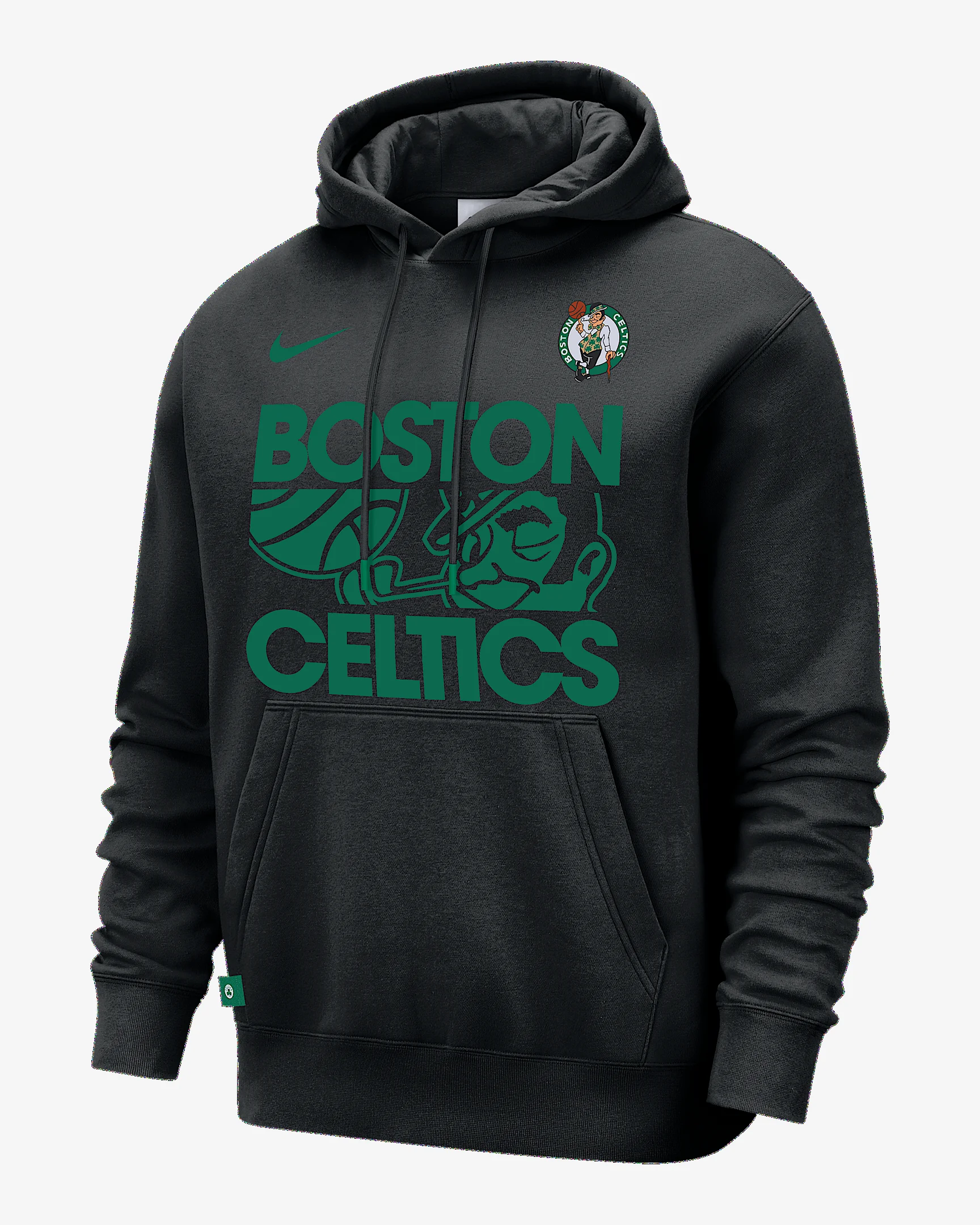 You're a Celtics fan. Don't hide it. Smooth on the outside, slightly fuzzy on the inside, our midweight semi-brushed fleece helps keep you cozy while still being breezy. It’s a comfy layer to wear year-round, perfect for those tricky in-between temps. Product Details - Ribbed cuffs and hem - Drawcord at hood - Body: 80% cotton/20% polyester. Hood lining: 100% cotton. - Machine wash - Imported - Shown: Black/Clover - Style: FZ7684-011 SIZE & FIT Standard fit: easy and traditional