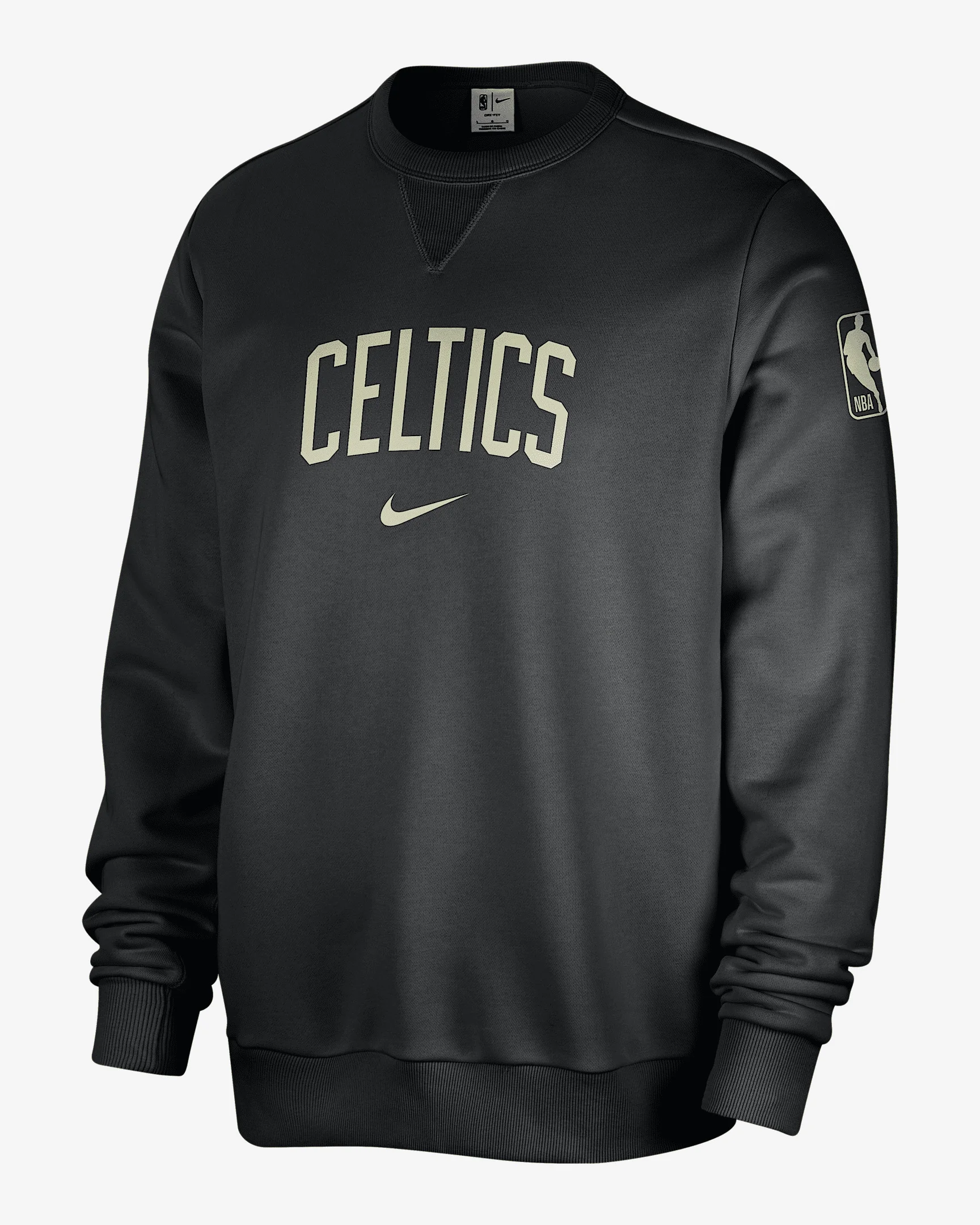 Celtics fans, this one's for you. Show your love for your team in this Boston Celtics sweatshirt. Part of our Standard Issue collection, it combines classic looks with a performance feel for today's hooper. Breathable French terry wicks away sweat, so you can take this to the courts and back home to cheer on your favorite team. Benefits - Nike Dri-FIT technology moves sweat away from your skin for quicker evaporation, helping you stay dry and comfortable. - Zippered pocket at the right side is large enough to store most phones. Product Details - Woven "Standard Issue" label - Body: 54% polyester/46% cotton. Rib: 96% cotton/4% spandex. - Machine wash - Imported - Shown: Black/Pale Ivory/Olive Aura - Style: FV2052-010 SIZE & FIT Standard fit: easy and traditional