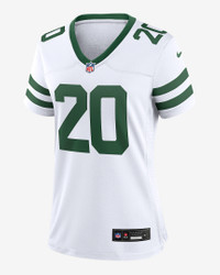 Rep one of your team's top stars with this New York Jets Jersey. Proper ventilation and a form fit help provide a dry, comfortable wear with the authentic look of the on-field uniform. Benefits - Screen-printed name, number and team mark offer lightweight durability. - Ventilation over major heat zones helps keep you cool. Product Details - Standard fit for a relaxed, easy feel - NFL shield at V-neck - Tagless neck label - Woven jock tag - 100% polyester - Machine wash - Imported - Shown: White - Style: 67NW0AUO72F-GT9
