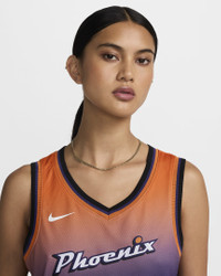 Cast in the vivid orange and purple gradient of an Arizona desert sunrise, the Phoenix Mercury Explorer Edition Jersey is striking and memorable. The closest planet to the sun, Mercury burns bright and triumphant—a symbol for new days, new icons and new legacies. Product Details - Ribbed neckline and armholes - Sewn-on jock tag - Heat-applied graphics - 100% polyester - Machine wash - Imported - Shown: New Orchid/Clay Orange - Style: DC9575-567 SIZE & FIT Model is wearing size S and is 5′8″173cm Loose fit: roomy and relaxed If you typically wear women's styles, please select your usual size. If you typically wear men's styles, please size up.