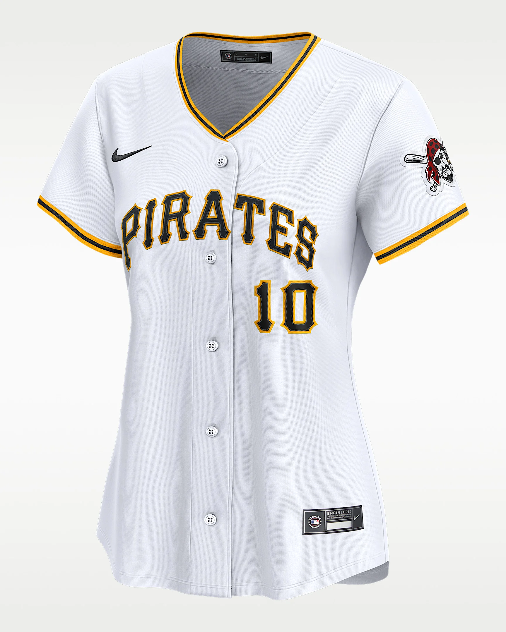 Designed with an authentic look, this Bryan Reynolds Jersey is inspired by the uniforms your Pittsburgh Pirates wear on the field. The sweat-wicking, double-knit mesh fabric helps deliver a breathable and comfortable feel all season. Benefits - Nike Dri-FIT ADV technology combines moisture-wicking fabric with advanced engineering and features to help you stay dry and comfortable. - Vapor Premier chassis is a breathable, high-performance fabric that helps improve mobility and moisture management. - Recycled twill details with faux stitch name and number help provide a more authentic look and feel. Product Details - Shown: White - Style: LM2WPTHOPT9-RNP