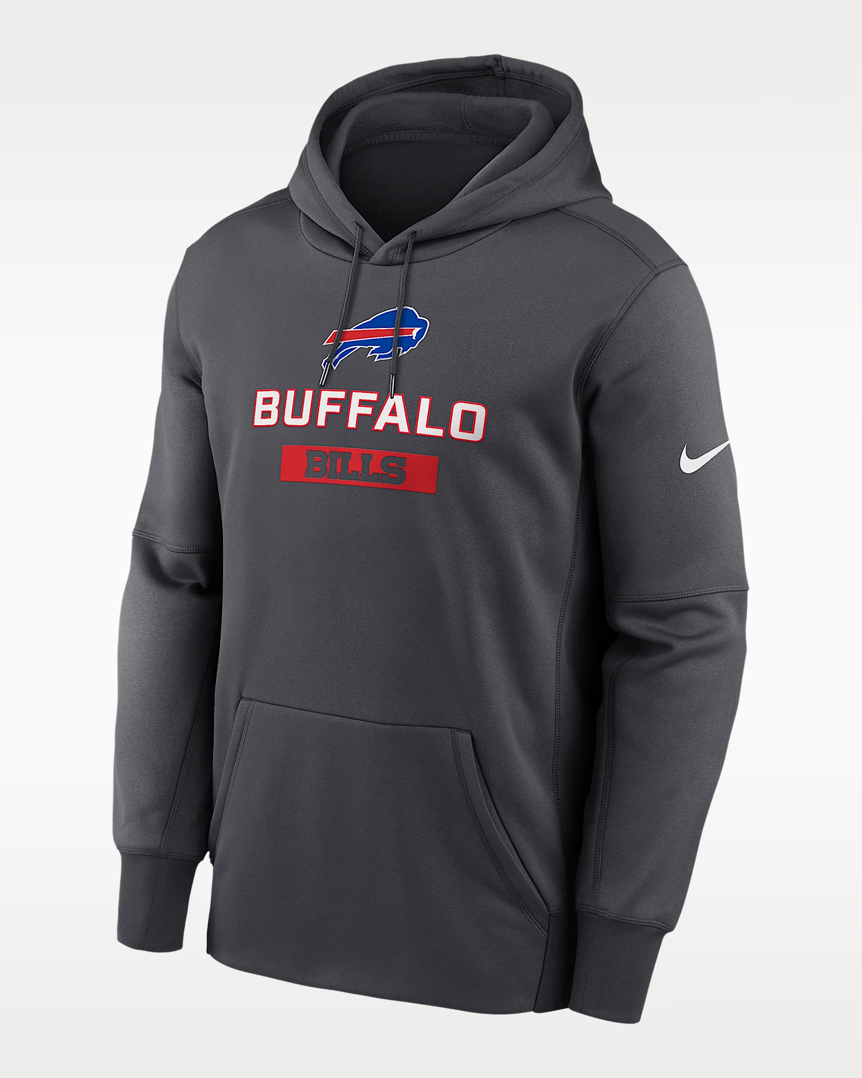This Buffalo Bills Toss Sweep Hoodie combines heat-trapping technology with sweat-wicking fabric to provide elevated warmth that helps keep you comfortable in cooler conditions. Benefits - Nike Therma fabric helps keep you warm. - Nike Dri-FIT technology moves sweat away from your skin for quicker evaporation, helping you stay dry and comfortable. - 2-way stretch fabric helps provide extra flexibility. Product Details - Front pocket - Hood with drawstring - 100% polyester - Machine wash - Imported - Shown: Anthracite - Style: NKAQ06F81-WQA