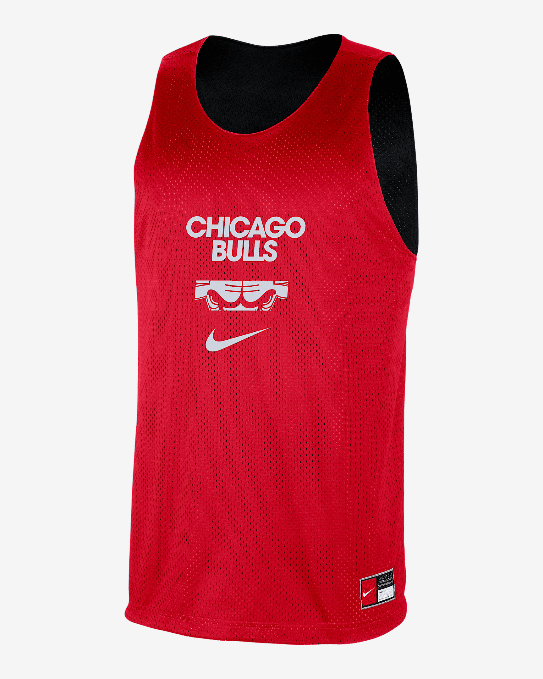 Two sides. Two ways to rep your squad. This reversible Chicago Bulls practice jersey is made with lightweight, breathable mesh to help keep you cool and moving comfortably on the court. Product Details - 100% polyester - Machine wash - Imported - Shown: University Red/Black/White - Style: FZ7763-657 SIZE & FIT Standard fit: easy and traditional
