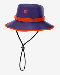 The Clemson Sideline Apex Gameday Boonie Hat is perfect for the outdoors with a classic bucket design and wraparound brim providing 360-degree coverage. It pairs durable ripstop fabric with sweat-wicking technology for a cool, dry accessory. Benefits - Nike Dri-FIT technology moves sweat away from your skin for quicker evaporation, helping you stay dry and comfortable. - Adjustable chin strap with toggle helps keep the hat secure and in place. Product Details - 100% polyester - Hand wash - Imported - Shown: Purple - Style: NC1B08DFCLN-CVH
