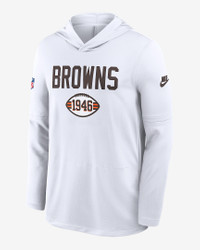 Perfect for lightweight coverage, the Pass Accuracy Top helps you comfortably support the Cleveland Browns. It features sweat-wicking technology for ultimate comfort. Benefits - Nike Dri-FIT technology moves sweat away from your skin for quicker evaporation, helping you stay dry and comfortable. - Rounded drop-tail hem helps provide proper coverage. Product Details - Hood without drawstring - 100% recycled polyester - Machine wash - Imported - Shown: White - Style: 03B910AQ93-D60