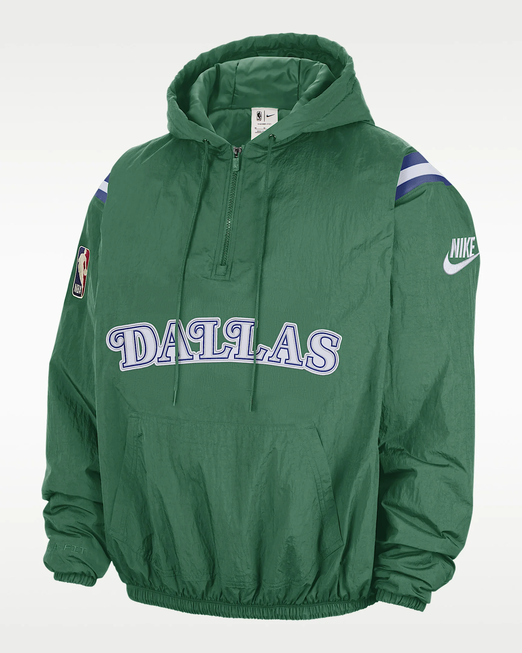 To understand where you’re headed, you have to know where you’ve been. Rep your Dallas Mavericks rich roots in this Nike’s Hardwood Classics collection. It’s a nostalgic trip down memory lane, bringing back some of your fondest Mavericks moments. A replica of the on-court version, this hoodie infuses Nike Therma-FIT with a water-repellent finish to help keep you warm and dry. Benefits - Nike Therma-FIT technology helps manage your body’s natural heat to help keep you warm in cold-weather conditions. - Drawcord lets you wear the hood loose or cinch out the cold. - Water-repellent finish helps keep you dry in wet weather. - Synthetic fill helps keep you insulated and warm. Product Details - Braided drawcord - Body: 100% nylon. Rib: 95% polyester/5% elastane. Lining/Fill: 100% polyester. - Machine wash - Imported - Shown: Clover/Black - Style: HQ5328-312 SIZE & FIT Loose fit: roomy and relaxed