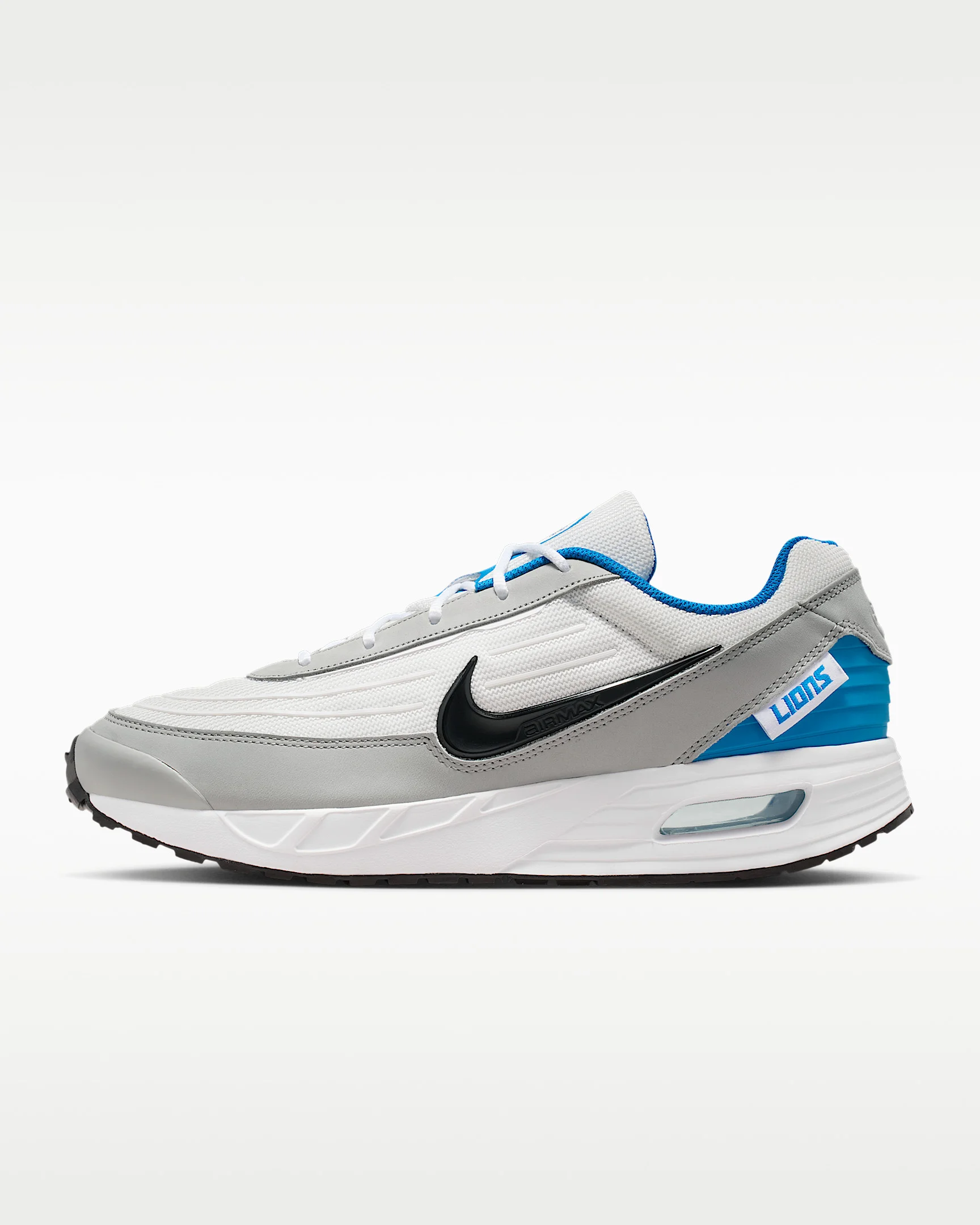 Max Air, max versatility, max fandom. Take your love for the Lions to a whole new level with the Air Max Verse. It brings depth and texture to your look thanks to clean lines, mixed materials and rubberized details. A Max Air unit in the heel adds just the right amount of cushioning. Benefits - Mesh upper with leather overlays is breathable and durable. - Plush and comfortable, Max Air cushioning has just the right amount of support. - Waffle outsole provides grip for wherever your day takes you. Product Details - Foam midsole - Rubber outsole - Shown: White/Blue Spark/Black - Style: IH2223-100