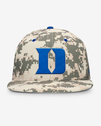 With sweat-wicking technology and a lightweight construction, the Duke Blue Devils Dugout True Fitted Hat is made for optimum comfort. Its camo pattern and team embroidery provide a distinct look. Benefits - Nike Dri-FIT technology moves sweat away from your skin for quicker evaporation, helping you stay dry and comfortable. - Nike AeroBill technology combines breathability with sweat-wicking comfort to help reduce distractions. - Perforated panels help maximize breathability Product Details - 6-panel design - Embroidered eyelets - 100% polyester - Hand wash - Imported - Shown: Camo Green - Style: NC810D6RDU-J26