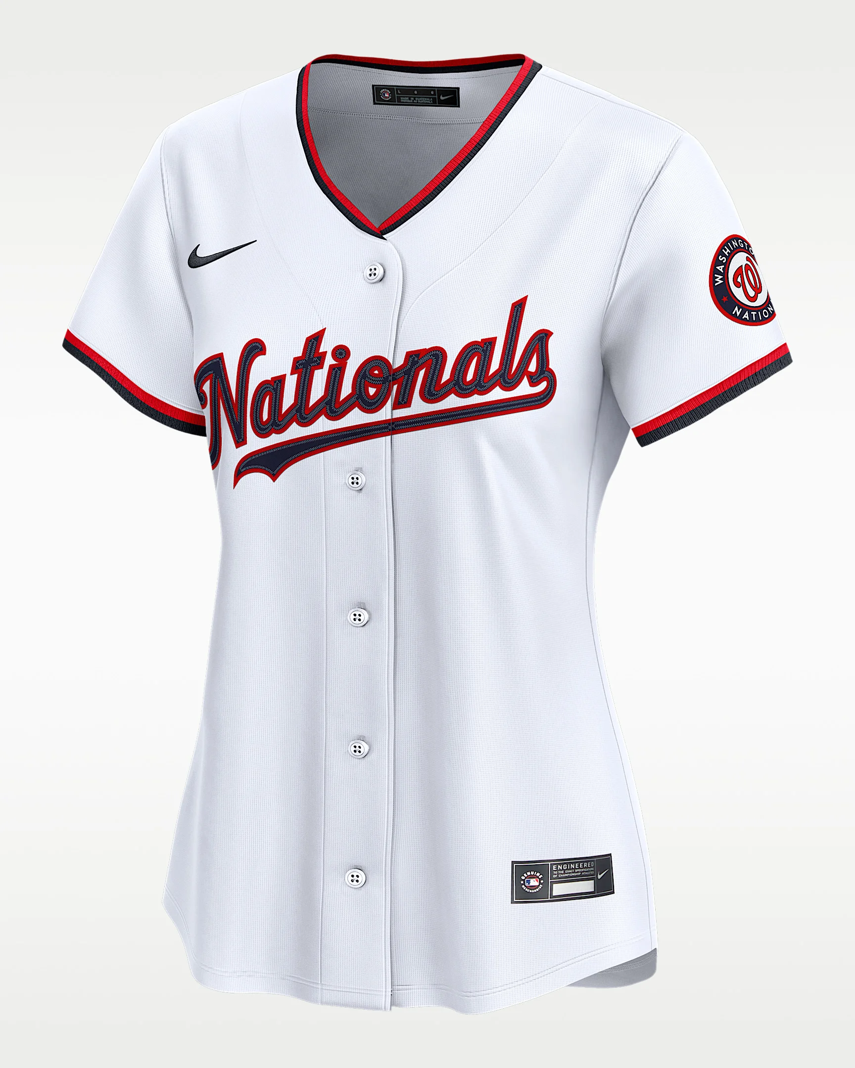 Designed with an authentic look, this Dylan Crews Jersey is inspired by the uniforms your Washington Nationals wear on the field. The sweat-wicking, double-knit mesh fabric helps deliver a breathable and comfortable feel all season. Benefits - Nike Dri-FIT ADV technology combines moisture-wicking fabric with advanced engineering and features to help you stay dry and comfortable. - Vapor Premier chassis is a breathable, high-performance fabric that helps improve mobility and moisture management. - Recycled twill details with faux stitch name and number help provide a more authentic look and feel. Product Details - Heat-applied MLB Batterman logo - Tagless neck label - Woven jock tag - 100% recycled polyester - Machine wash - Imported - Shown: White - Style: LM2WWTHOWT9-49E