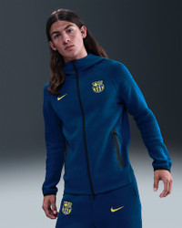 Amp up your FC Barcelona pride with this classic Windrunner jacket. Made with our premium lightweight Tech Fleece that's smooth both inside and out, it gives you plenty of warmth without adding bulk. Product Details - Body/Hood lining: 53% cotton/47% polyester. Pocket bags: 100% cotton. - Machine wash - Imported - Shown: Gym Blue/Opti Yellow - Style: FZ1274-432 SIZE & FIT Model is wearing size M and is 6′1″185cm Standard fit: easy and traditional