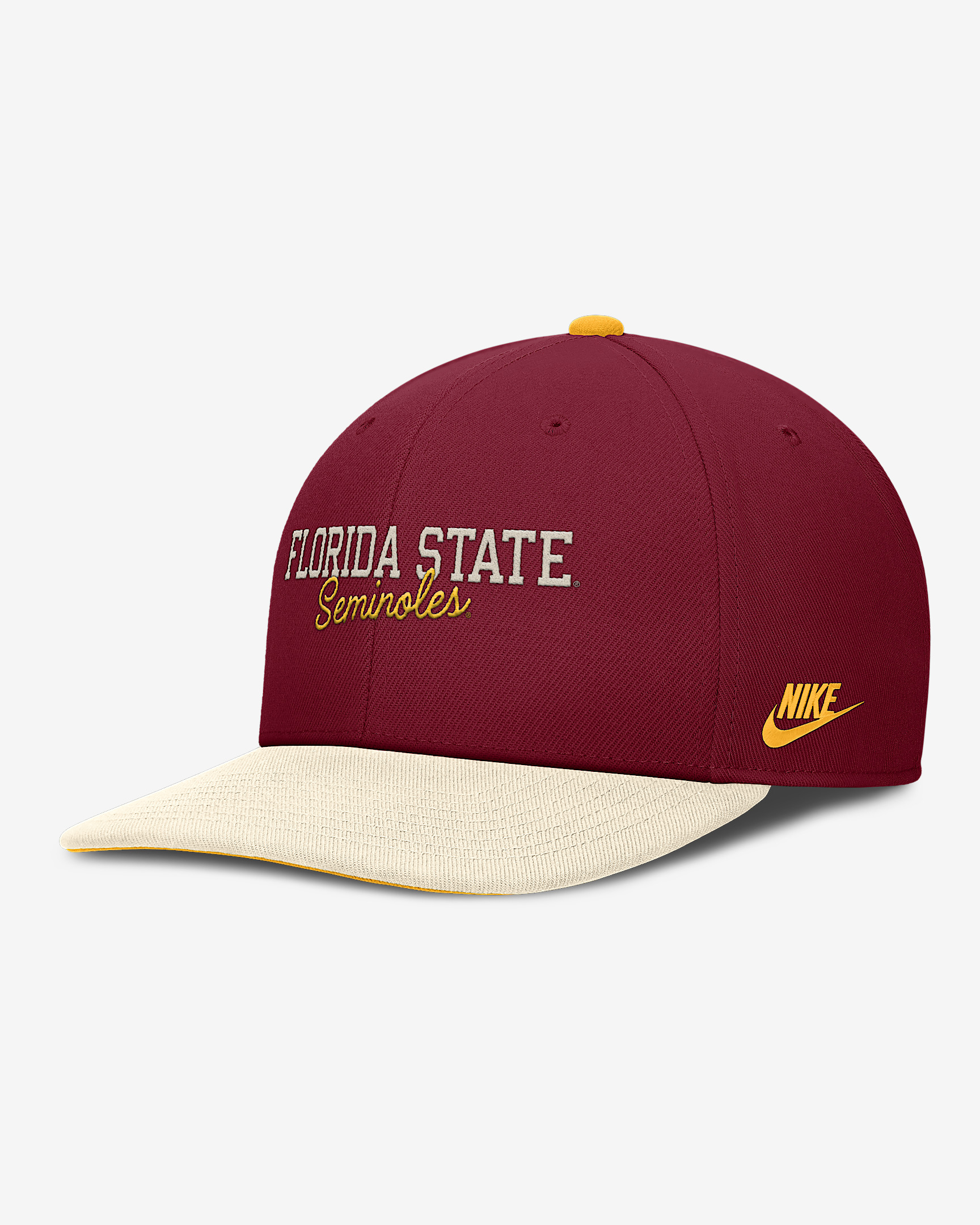 Featuring a square flat bill and high crown, this Legacy Script Hat helps you display support for Florida State with embroidered team details on the front and right side. Its sweat-wicking technology and snapback closure help provide a breathable, comfortable feel. Benefits - Nike Dri-FIT technology moves sweat away from your skin for quicker evaporation, helping you stay dry and comfortable. - Snapback closure provides a customizable fit. Product Details - 6-panel design - Embroidered eyelets - 100% polyester - Hand wash - Imported - Shown: Gold - Style: NC120FCRFSH-1R5