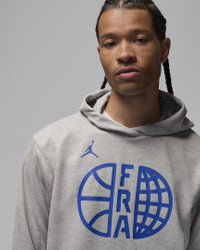 Don't let a little chill come between you and cheering on your country. Show your pride for France with squad graphics on this loose-fitting fleece pullover hoodie. Benefits - Nike Dri-FIT technology moves sweat away from your skin for quicker evaporation, helping you stay dry and comfortable. - Ribbed cuffs and hem help keep the hoodie in place while you move. - Basketball-inspired hood lets you see side to side when you wear it up. Product Details - Front pocket - Body: 62% cotton/38% polyester. Hood lining: 100% cotton. - Machine wash - Imported - Shown: Dark Grey Heather/Old Royal - Style: FQ0419-063 SIZE & FIT Loose fit: roomy and relaxed
