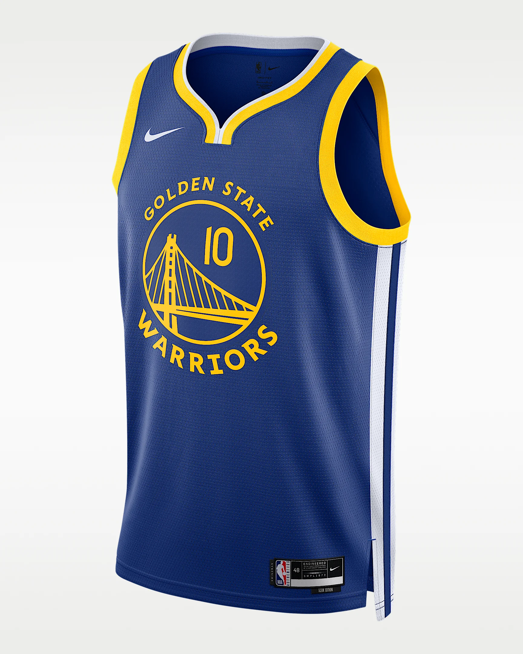 Every team has its true colors, an unmistakable identity that sets it apart from the rest of the league. Honoring a rich hoops heritage, this Golden State Warriors jersey is inspired by what the pros wear on the hardwood, from squad details to lightweight, sweat-wicking mesh. It helps keep you dry and cool on or off the court while you rep your favorite player and the game you love. Benefits - Nike Dri-FIT technology moves sweat away from your skin for quicker evaporation, helping you stay dry and comfortable. - Breathable mesh helps keep you cool on or off the court. Product Details - Heat-applied graphics - Jock tag at hem - 100% polyester - Machine wash - Imported - Shown: Rush Blue - Style: DN2005-406 SIZE & FIT Standard fit: easy and traditional