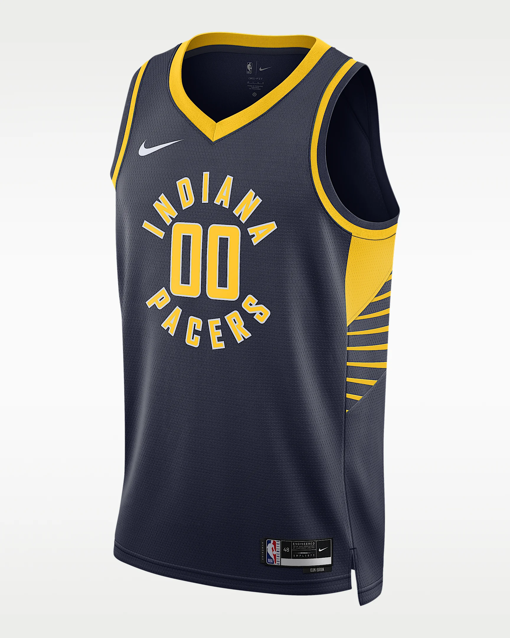 Every team has its true colors, an unmistakable identity that sets it apart from the rest of the league. Honoring a rich hoops heritage, this Indiana Pacers jersey is inspired by what the pros wear on the hardwood, from squad details to lightweight, sweat-wicking mesh. It helps keep you dry and cool on or off the court while you rep your favorite player and the game you love. Benefits - Nike Dri-FIT technology moves sweat away from your skin for quicker evaporation, helping you stay dry and comfortable. - Breathable mesh helps keep you cool on or off the court. Product Details - Twill player name and number - Heat-applied graphics - Jock tag at hem - 100% polyester - Machine wash - Imported - Shown: College Navy - Style: DN2007-426 SIZE & FIT Standard fit: easy and traditional If you typically wear men's styles, please select your usual size. If you typically wear women's styles, please size down.