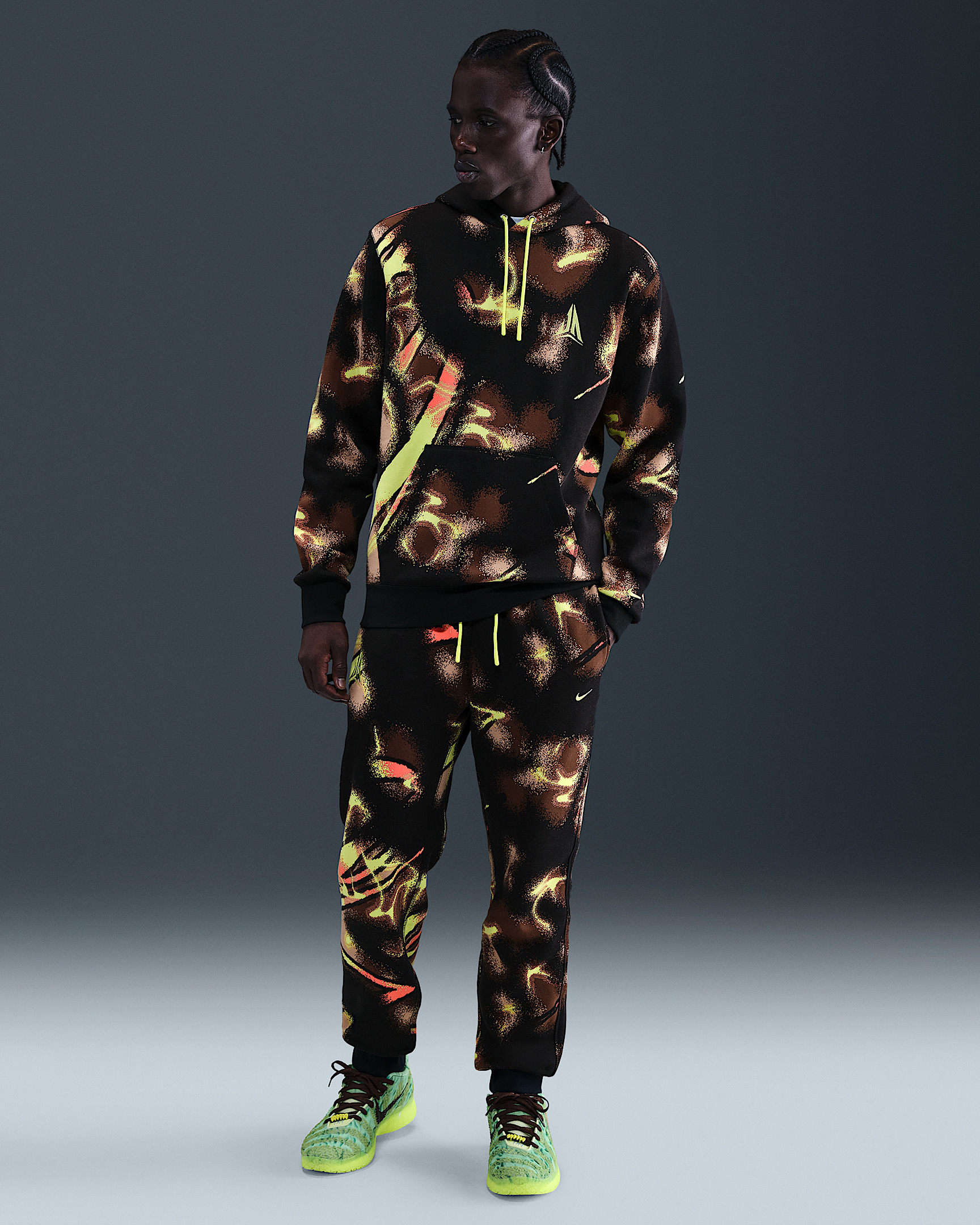 Ja's impact on the game is like a jolt of energy. These soft Club Fleece pants use bold graphics to capture his signature style: Fearless, fiery and impossible to ignore. Benefits - Our midweight brushed fleece feels extra soft on the inside and smooth on the outside, helping you stay cozy while keeping its structured shape. - Elastic waistband with drawcord provides a secure fit. Product Details - Side pockets - Ribbed cuffs - Embroidered "JA" logo - Embroidered Swoosh logo - 80% cotton/20% polyester - Machine wash - Imported - Shown: Light Lemon Twist - Style: HV3382-736 SIZE & FIT Model is wearing size M and is 6′1″185cm Standard fit: easy and traditional