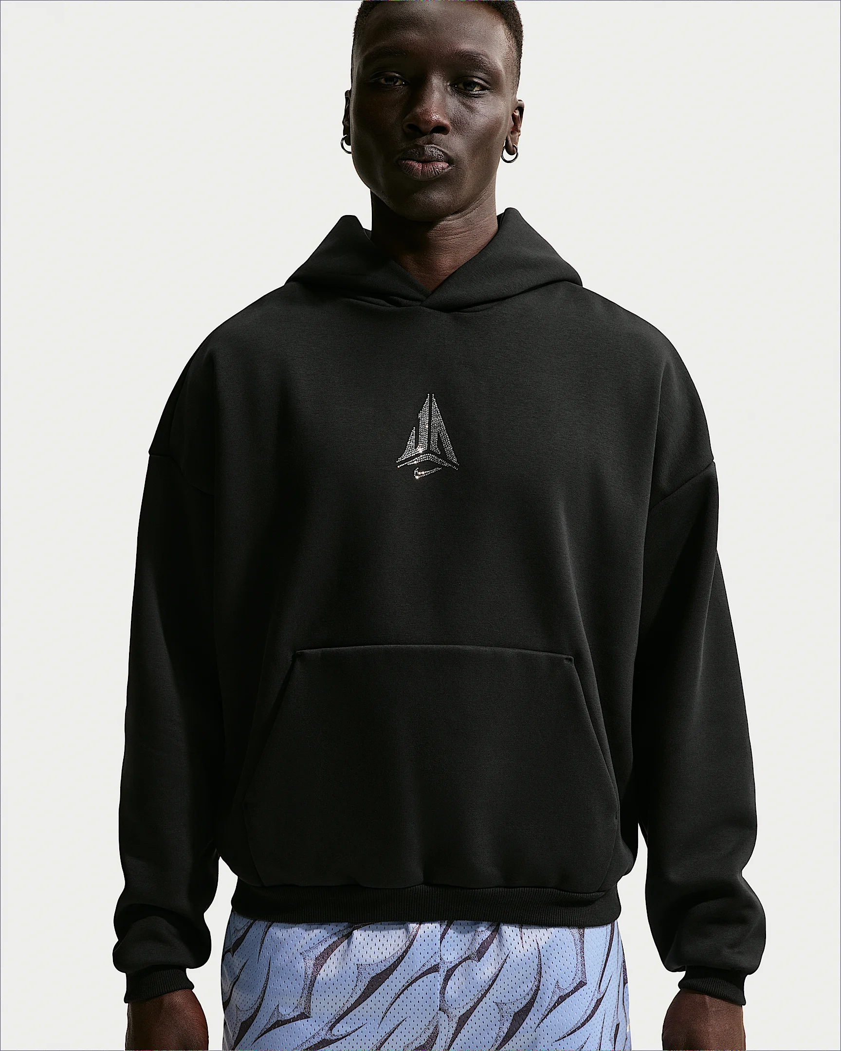 We see you, 12. Undaunted. Bold. Blinged out — always. Be you, just like Ja, in this oversized pullover hoody. Ja’s front logo comes with a crystal trim, complementing the iconic unabashed image on the back and our Therma-FIT which helps you stay warm when the temps dip. Benefits - Nike Therma-FIT technology helps manage your body’s natural heat to help keep you warm in cold-weather conditions. Product Details - Oversized fit - Brush-back performance thermal fabric - Front pouch pocket - Body: 52% polyester/48% cotton. Rib: 96% cotton/4% spandex. Hood lining: 52% polyester/48% cotton. - Machine wash - Imported - Shown: Black - Style: IM9791-010 SIZE & FIT Model is wearing size M and is 6′0″183cm Loose fit: roomy and relaxed