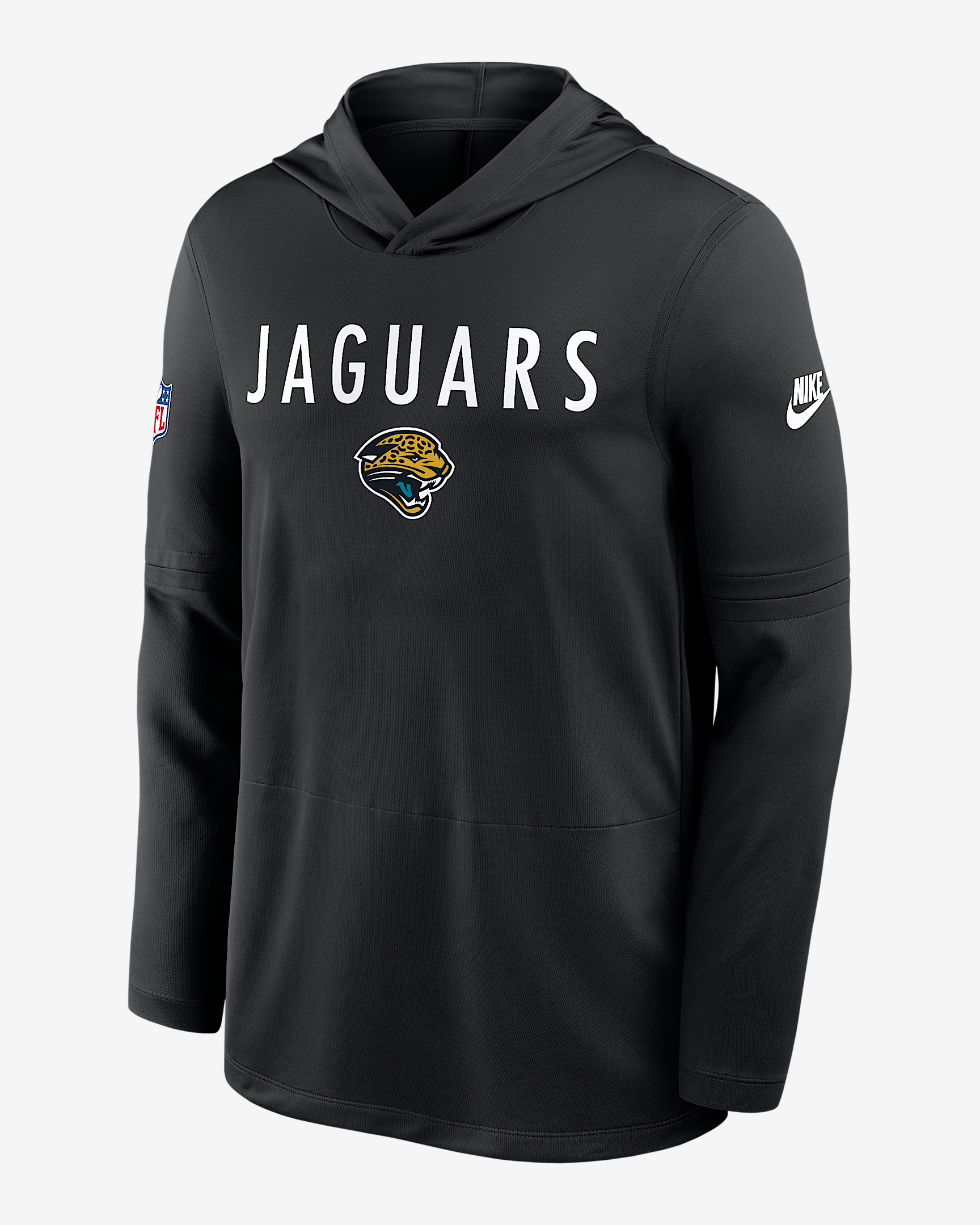 Perfect for lightweight coverage, the Pass Accuracy Top helps you comfortably support the Jacksonville Jaguars. It features sweat-wicking technology for ultimate comfort. Benefits - Nike Dri-FIT technology moves sweat away from your skin for quicker evaporation, helping you stay dry and comfortable. - Rounded drop-tail hem helps provide proper coverage. Product Details - Hood without drawstring - 100% recycled polyester - Machine wash - Imported - Shown: Black - Style: 03B900AQ9N-D60
