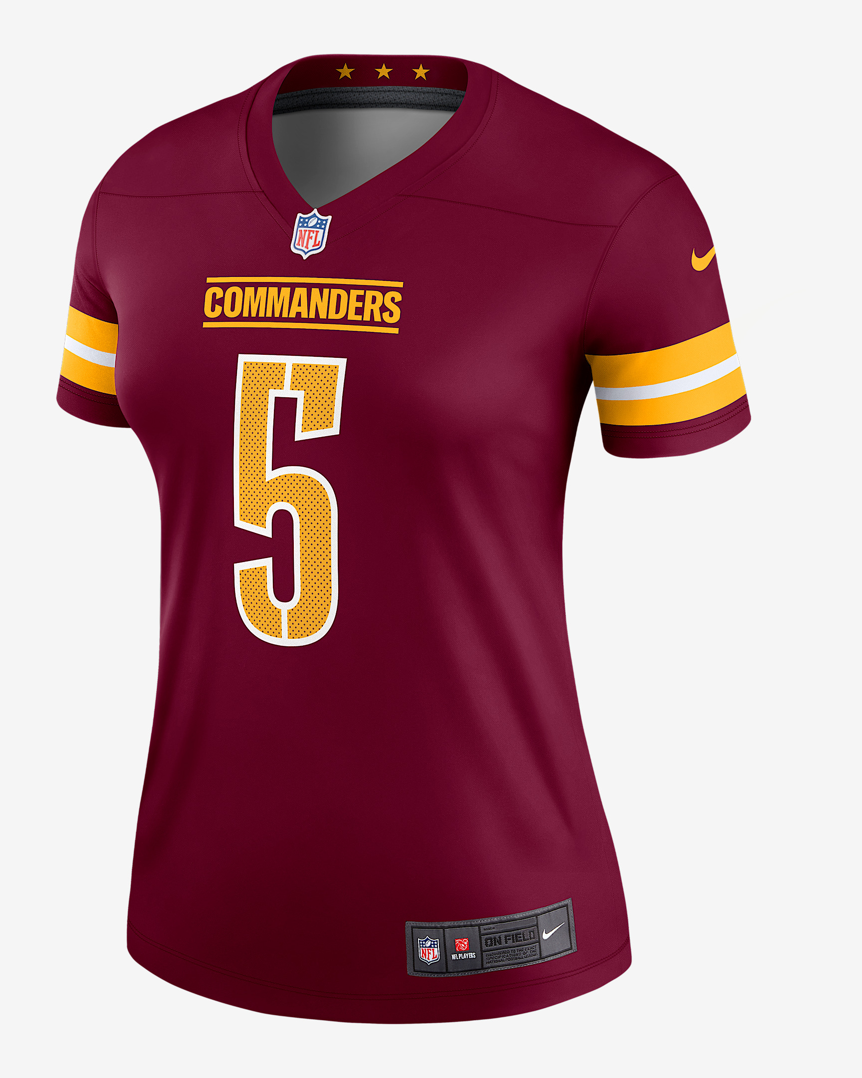 This Jayden Daniels Jersey delivers an authentic touch on game day with official team details and a tribute to your favorite player. Sweat-wicking technology helps provide consistent comfort as you rep the Washington Commanders. Benefits - Nike Dri-FIT technology moves sweat away from your skin for quicker evaporation, helping you stay dry and comfortable. - Fully sublimated double pique fabric helps provide lightweight comfort. Product Details - Streamlined fit - NFL shield at V-neck - Tagless neck label - Woven jock tag - 100% polyester - Machine wash - Imported - Shown: Burgundy - Style: 94NWHLWS9EF-BZ6