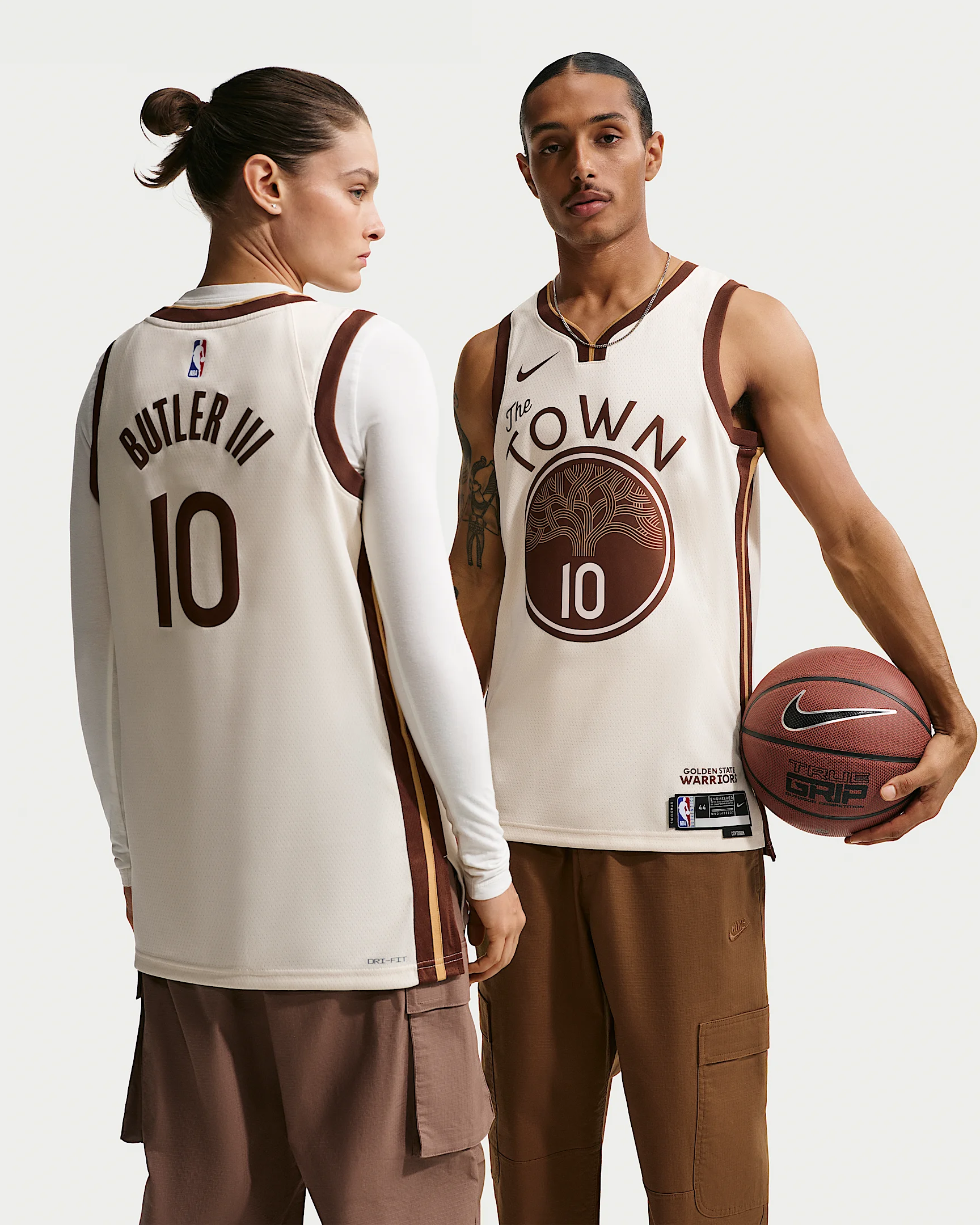 The 2025-2026 Golden State Warriors City Edition Jersey (originally released in 2019-20) honors The Town and its rightful place in team lore. A fresh cream base signifies the team’s strength and intensity. The tone-on-tone modern design features a rich dark brown, natural cream, and a touch of gold. The intentional color palette embodies the pride, grit, strength, and enduring legacy of the team, the community, and the culture of Oakland, which was home to the Warriors for 47 seasons. Product Details - 100% polyester - Machine wash - Imported - Shown: Natural - Style: HM5981-125 SIZE & FIT Model is wearing size M and is 6′1″185cm Standard fit: easy and traditional