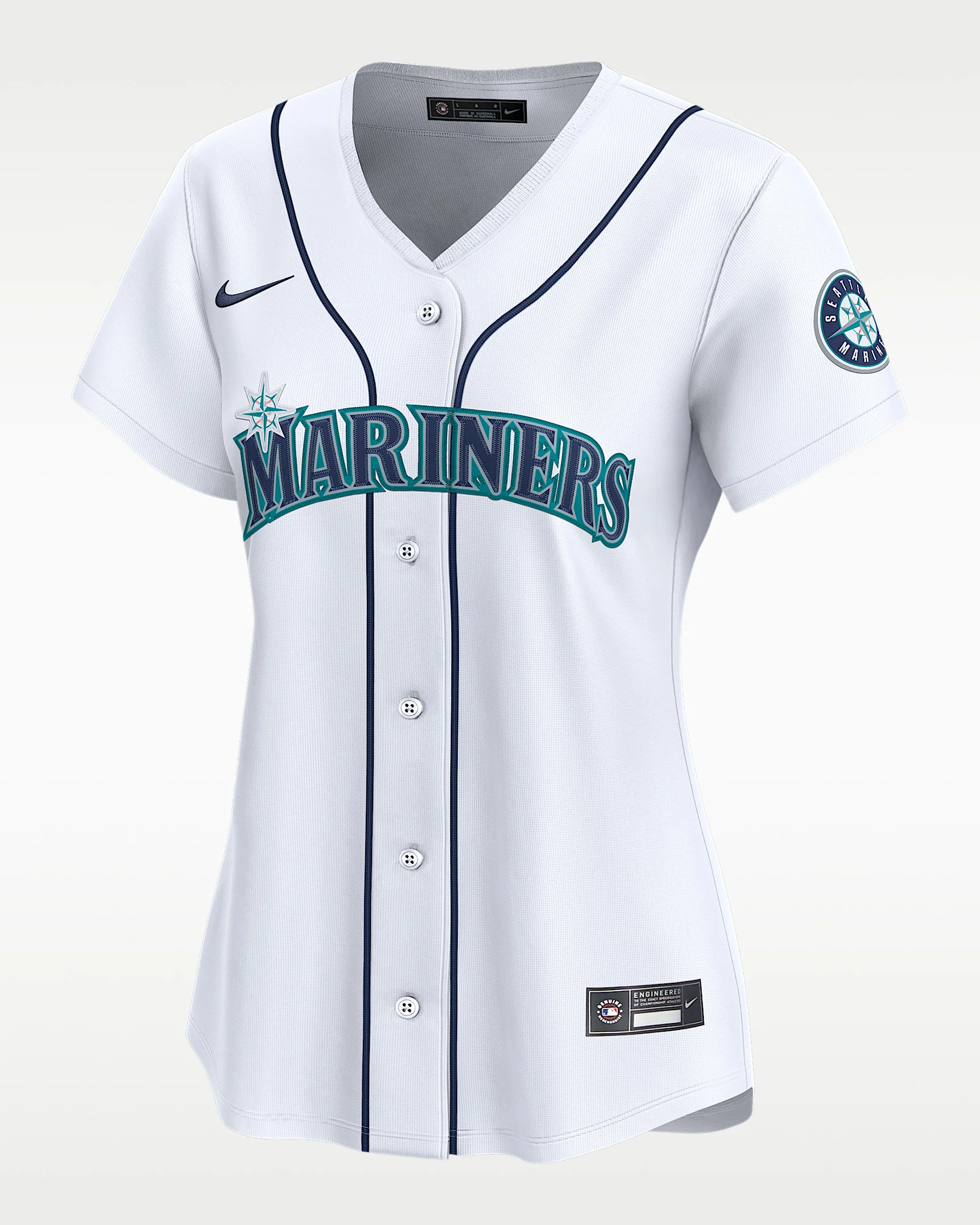 Designed with an authentic look, this Julio Rodriguez Jersey is inspired by the uniforms your Seattle Mariners wear on the field. The sweat-wicking, double-knit mesh fabric helps deliver a breathable and comfortable feel all season. Benefits - Nike Dri-FIT ADV technology combines moisture-wicking fabric with advanced engineering and features to help you stay dry and comfortable. - Vapor Premier chassis is a breathable, high-performance fabric that helps improve mobility and moisture management. - Recycled twill details with faux stitch name and number help provide a more authentic look and feel. Product Details - Heat-applied MLB Batterman logo - Tagless neck label - Woven jock tag - 100% recycled polyester - Machine wash - Imported - Shown: White - Style: LM2WMVHOMV9-5C4