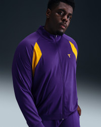 This Kobe jacket is made with soft, sweat-wicking knit fabric. Mamba graphics celebrate the Year of the Snake and Kobe's iconic nickname. Product Details - Stand-up collar - Embroidered Swoosh logo - Full-zip design - Side pockets - Ribbed cuffs and hem - Body: 100% polyester - Machine wash - Imported - Shown: Court Purple/University Gold/University Gold - Style: HJ8097-547 SIZE & FIT Model is wearing size M and is 6′0″183cm Standard fit: easy and traditional