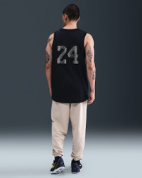 Two numbers, one mentality. Rep the Mamba’s journey with snakeskin-print numbers on this lightweight and breathable mesh jersey. Benefits - Mesh fabric has a lightweight and breathable feel. - '8' and '24 graphics are crafted from smooth synthetic leather for an elevated touch. Product Details - Embroidered Sheath logo - Embroidered Swoosh logo - Ribbed collar and armholes - 100% polyester - Machine wash - Imported - Shown: Black/Sanddrift - Style: IB2711-010 SIZE & FIT Model is wearing size M and is 6′0″183cm Standard fit: easy and traditional