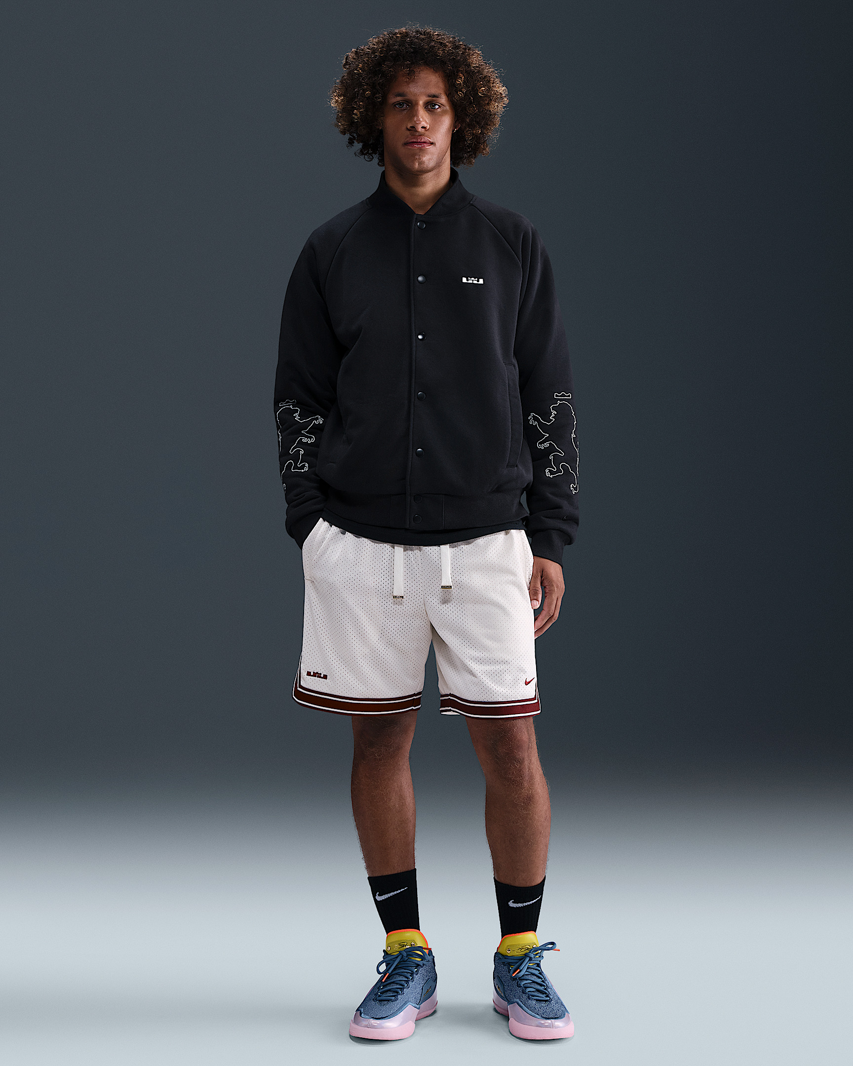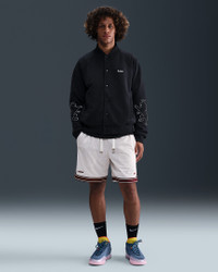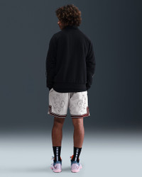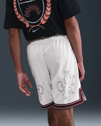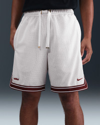 Celebrate LeBron’s reign with these 8” basketball shorts. Two layers of structured mesh bring a premium feel, and a “Forever King” label pays tribute to his long-standing dominance of the court. Benefits - Double-layered heavyweight mesh has a durable and breathable feel. - Drawcord tips highlight LeBron's jersey numbers, plus "LBJ" and crown logos. - Zippered pockets securely store your essentials. Product Details - 8" inseam - Elastic waistband with flat drawcord - Embroidered Swoosh logo - Embroidered LeBron crown logo - Body/Lining: 100% polyester - Machine wash - Imported - Shown: Sail/Dark Team Red - Style: HV3394-133 SIZE & FIT Model is wearing size M and is 6′2″188cm Standard fit: easy and traditional