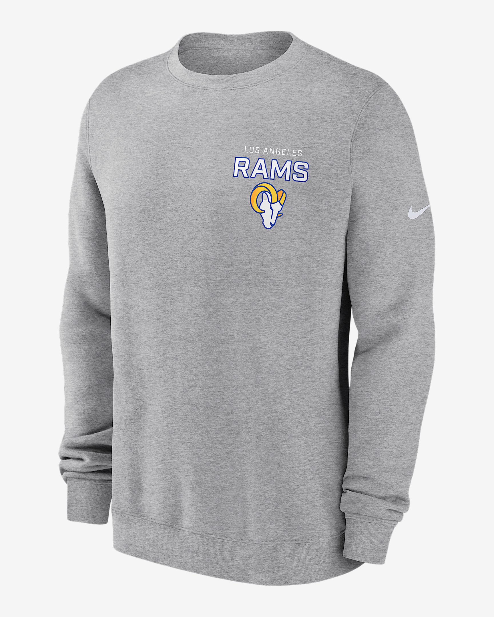 This Draw Block Club Crew brings a traditional look to your Los Angeles Rams wardrobe. It features a soft fleece lining to help keep you warm and team details for a game-day aesthetic. Product Details - 82% cotton/18% polyester - Machine wash - Imported - Shown: Dark Grey Heather - Style: NKPV06G95-KU0