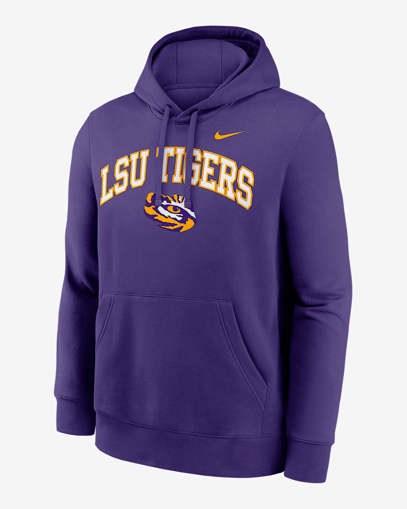 Featuring bold team graphics, this Arch Hoodie is made with cozy fleece fabric and a brushed French terry lining to help you comfortably support LSU in chilly temperatures. Product Details - Front pocket - Hood with adjustable drawstring - 82% cotton/18% polyester - Machine wash - Imported - Shown: Purple - Style: NKDK51LLSN-Y48