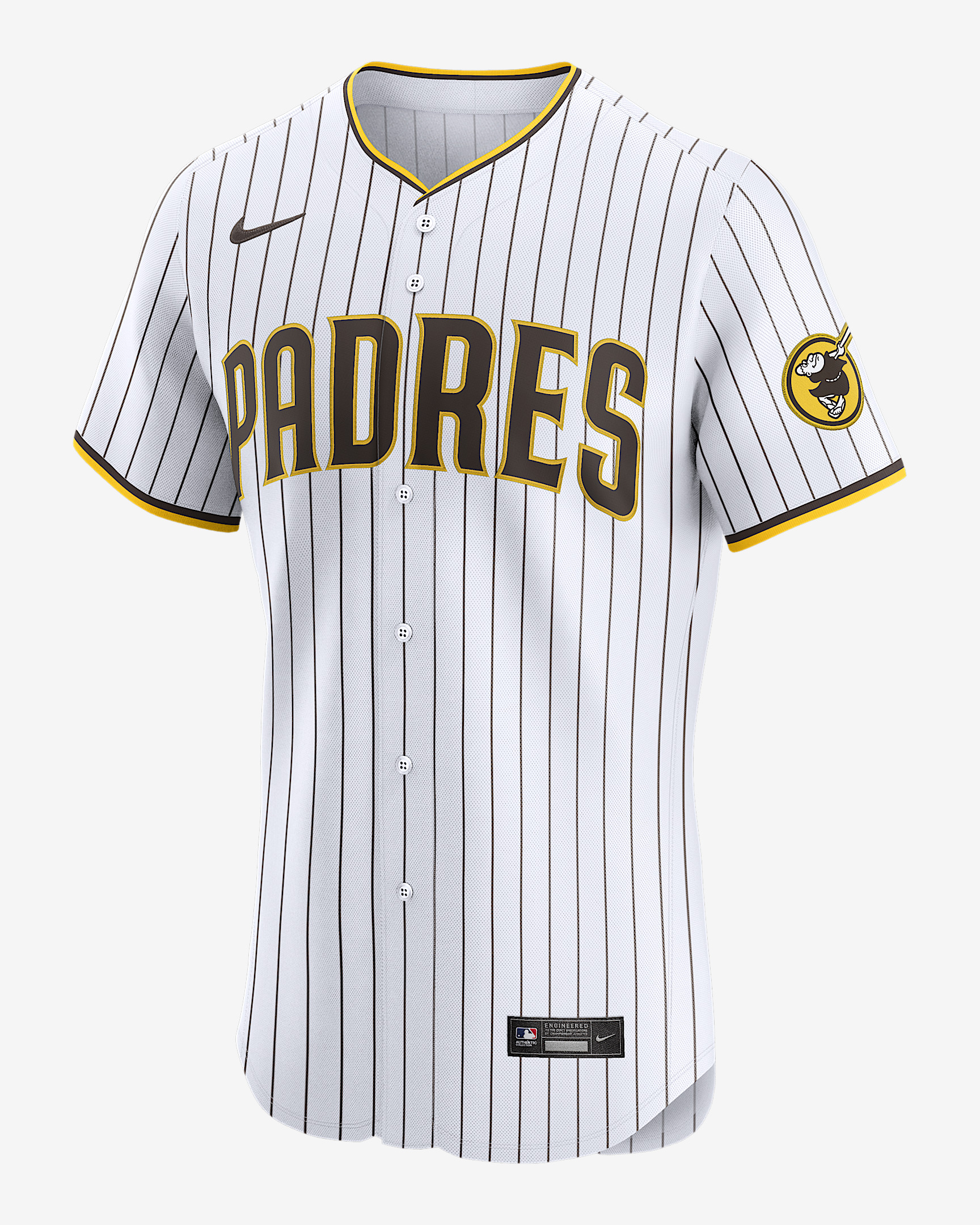 Featuring the official on-field design of the San Diego Padres, this Manny Machado Jersey delivers an authentic look with premium player details. The sweat-wicking, stretch mesh fabric helps provide a breathable, comfortable feel on game day. Benefits - Nike Dri-FIT ADV technology combines moisture-wicking fabric with advanced engineering and features to help you stay dry and comfortable. - Vapor Premier chassis is a breathable, high-performance fabric that helps improve mobility and moisture management. - Stretch mesh fabric is lightweight and flexible for consistent comfort. - Authentic design is the same look worn by the pros on the field. Product Details - Heat-applied MLB Batterman logo - Premium recycled twill details - Tagless neck label - Woven jock tag - 95% polyester/5% spandex - Machine wash - Imported - Shown: White - Style: 90B0PYHOPY9-XRF