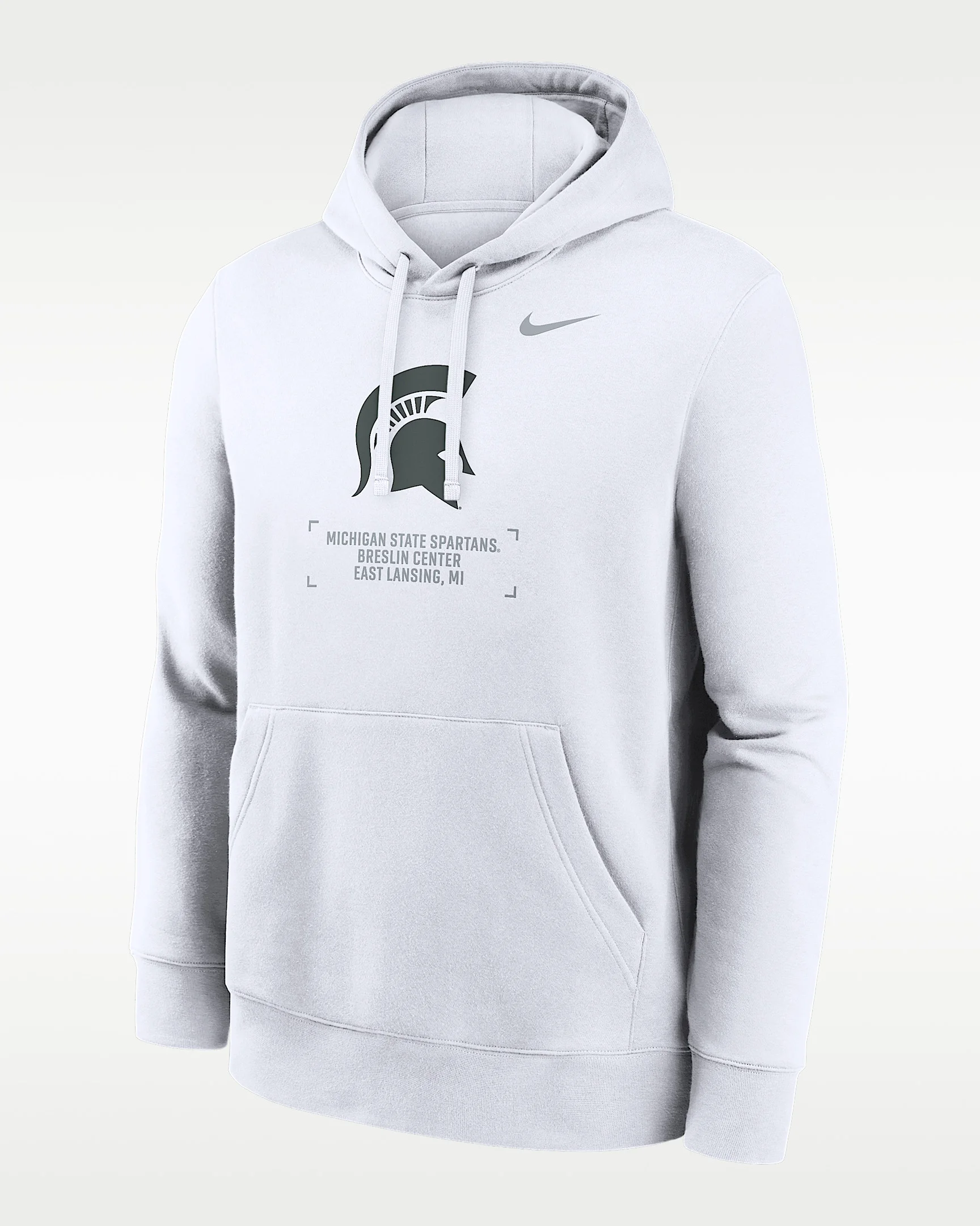 Featuring bold team details on the front and back, this Club Basketball 2-Hit Hoodie is made with cozy fleece fabric and a brushed French terry lining to help you comfortably support Michigan State in chilly temperatures. Product Details - Front pocket - Hood with drawstring - 82% cotton/18% polyester - Machine wash - Imported - Shown: White - Style: NKDK10AMST-DV1