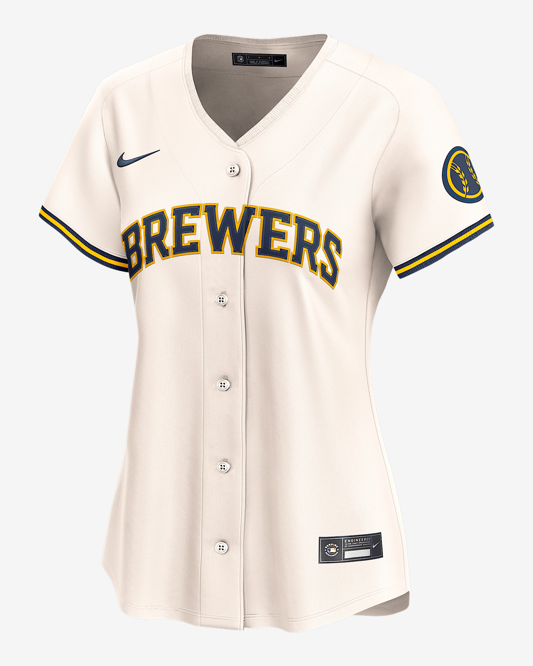 Designed with an authentic look, this Milwaukee Brewers Jersey is inspired by the uniforms your favorite MLB squad wears on the field. The sweat-wicking, double-knit mesh fabric helps deliver a breathable and comfortable feel all season. Benefits - Nike Dri-FIT ADV technology combines moisture-wicking fabric with advanced engineering and features to help you stay dry and comfortable. - Vapor Premier chassis is a breathable, high-performance fabric that helps improve mobility and moisture management. - Recycled twill details help provide a more authentic look and feel. Product Details - Heat-applied MLB Batterman logo - Tagless neck label - 100% polyester - Machine Wash - Imported - Shown: Cream - Style: LM2WMZHOMZB-1U2