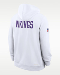 Featuring bold team graphics, the Alt 2 Tight Coverage Sideline Hoodie combines sweat-wicking technology with a soft fleece lining to help you comfortably support the Minnesota Vikings in cooler weather. Benefits - Nike Dri-FIT technology moves sweat away from your skin for quicker evaporation, helping you stay dry and comfortable. - Dolman sleeves help increase range of motion with a roomy fit under the arms. Product Details - Hood with drawstring - Front pocket - Zippered pocket at right side - 53% polyester/47% cotton - Machine wash - Imported - Shown: White - Style: 03AZ10A9M-A7L