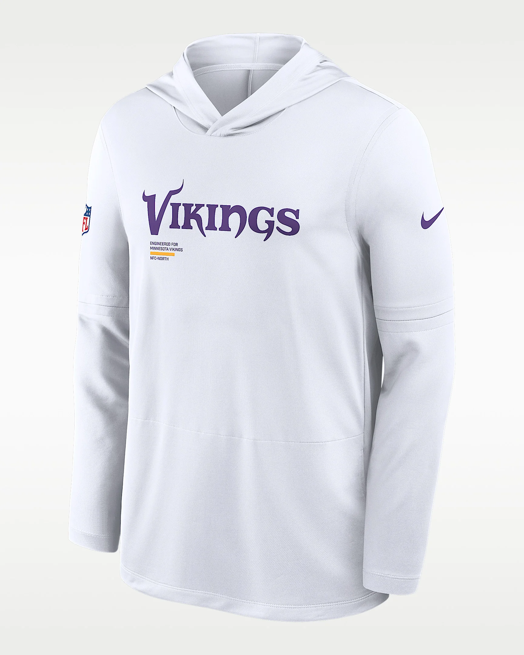 Perfect for lightweight coverage, the Pure Fury Sideline Top helps you comfortably support the Minnesota Vikings. It features sweat-wicking technology for ultimate comfort. Benefits - Nike Dri-FIT technology moves sweat away from your skin for quicker evaporation, helping you stay dry and comfortable. - Removable sleeves help add versatility for various conditions. Product Details - Front pocket - Hood without drawstring - 100% recycled polyester - Machine wash - Imported - Shown: White - Style: 03B910A9M-P8B