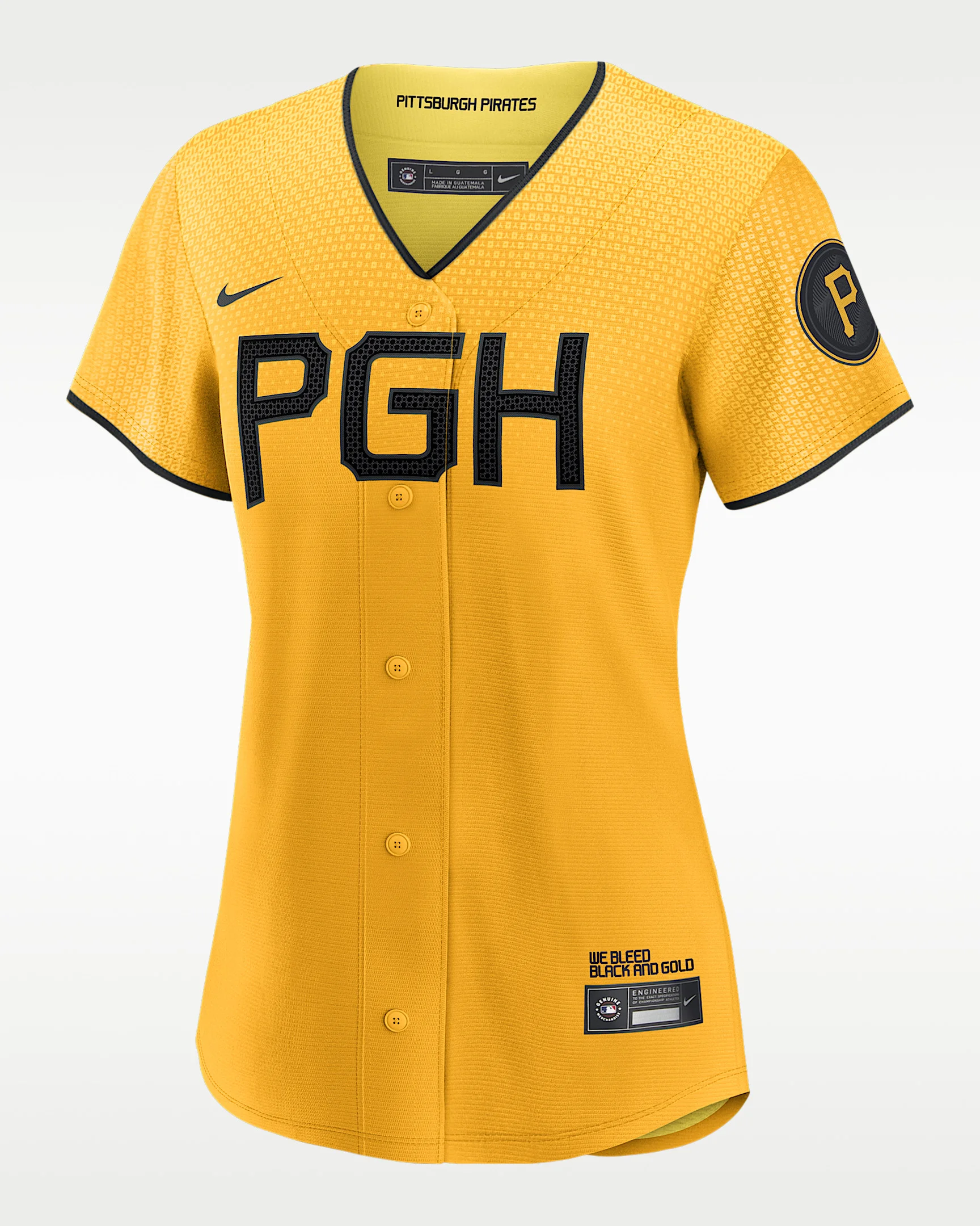 The MLB Pittsburgh Pirates City Connect Jersey is ready for first pitch with its breathable polyester and lightweight fit. Its city-inspired details are straight from the player's authentic uniform, helping you properly showcase your fandom. Product Details - 100% polyester - Machine wash - Imported - Shown: Sundown/Black - Style: T77301O1PT7-R10