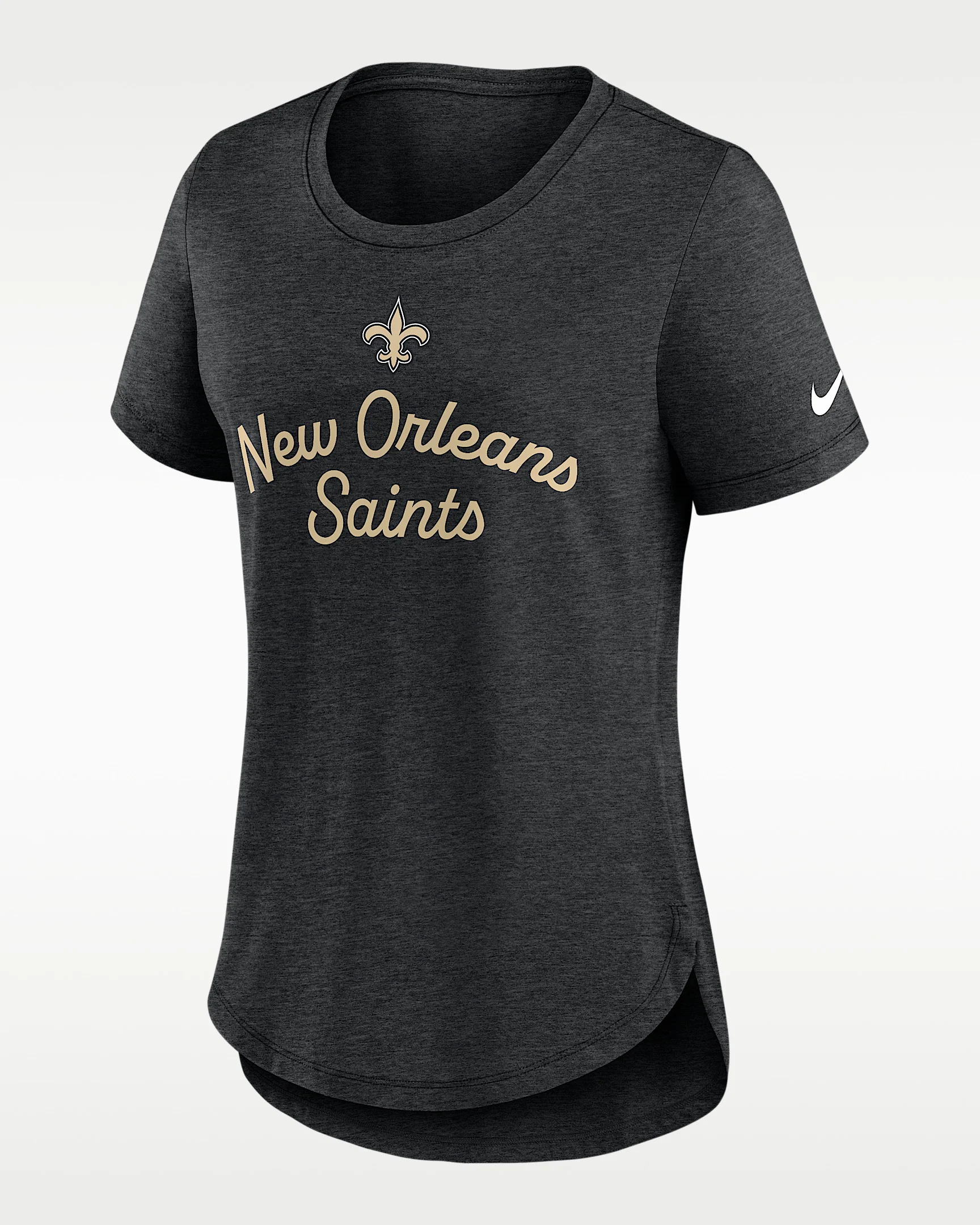 Made with soft tri-blend material, this New Orleans Saints Script T-Shirt features a heathered design that accentuates the team details to help you comfortably support your favorite NFL squad. Product Details - Drop-tail hem - 50% polyester/25% cotton/25% rayon - Machine wash - Imported - Shown: Black - Style: NKMV00H7W-EVH
