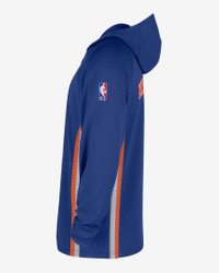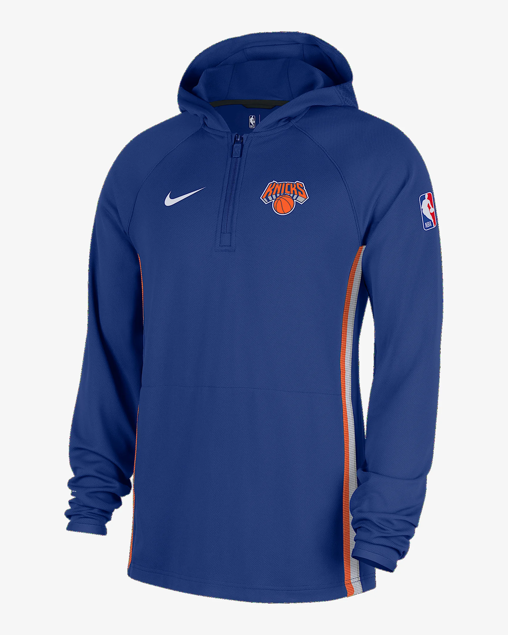Get that quintessential court-side look with this authentic Knicks quarter-zip hoodie. The stretchy knit construction is engineered to the exact specifications of NBA athletes. Nike Dri-FIT technology moves sweat away from your skin for quicker evaporation, helping you stay dry and comfortable. Product Details - Mesh pocket bags - Elastic cuffs - Body/Hood lining: 91% polyester/9% spandex. Insets/Insets Lining/Mesh: 100% polyester. - Machine wash - Imported - Shown: Rush Blue/Black/White - Style: HM7065-495 SIZE & FIT Standard fit: easy and traditional