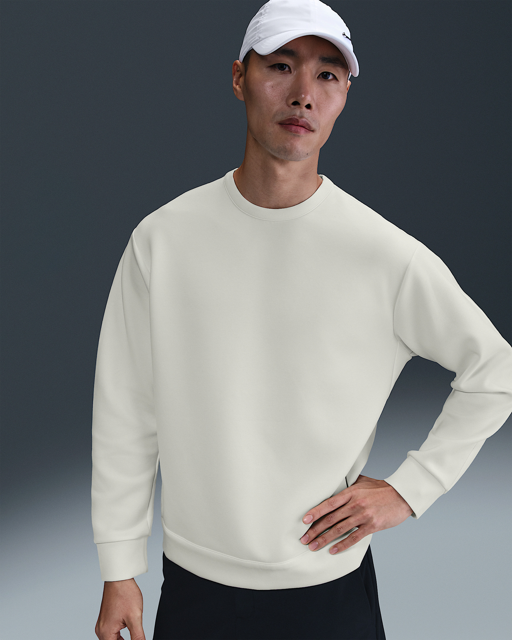 Extraordinarily soft and smooth, our ImpossiblySoft fabric feels made for all-day motion. This double-knit crew is built with clean lines and sweat-wicking Dri-FIT technology for the ultimate comfort on the go. Benefits - Nike Dri-FIT technology moves sweat away from your skin for quicker evaporation, helping you stay dry and comfortable. - Raglan sleeves and articulated elbow construction help you move freely and naturally. Product Details - Signature locker loop on back collar - 51% polyester/25% modal/15% cotton/9% spandex - Machine wash - Imported - Shown: Sail/Light Bone - Style: HQ6964-133 SIZE & FIT Model is wearing size M and is 6′1″185cm Big & Tall model is wearing size 3XL and is 6'3"191cm Loose fit: roomy and relaxed