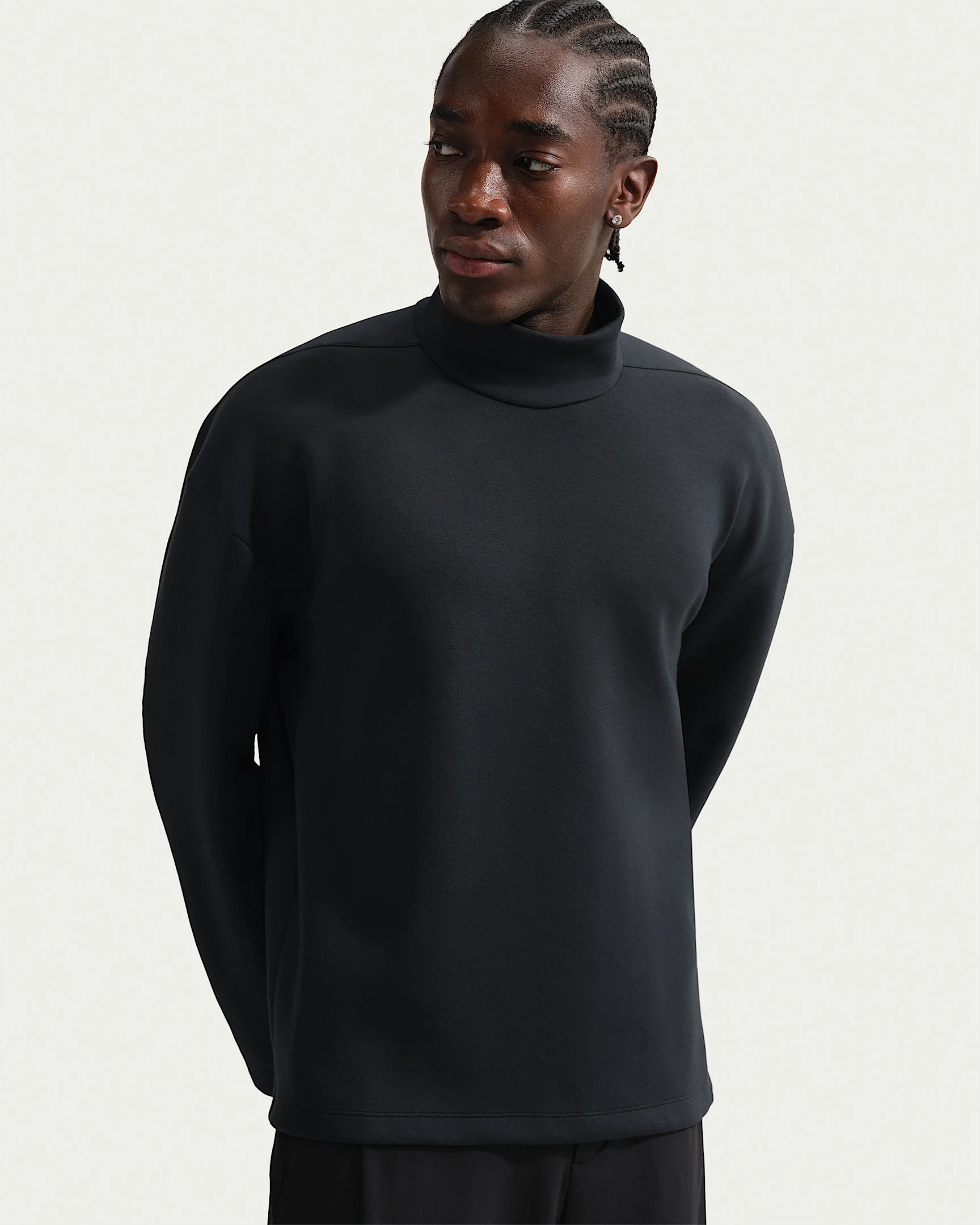 Extraordinarily soft and smooth, our ImpossiblySoft fabric feels made for all-day motion. This double-knit turtleneck combines a roomy, sophisticated look and sweat-wicking Dri-FIT technology for the ultimate comfort on the go. Benefits - Nike Dri-FIT technology moves sweat away from your skin for quicker evaporation, helping you stay dry and comfortable. - Angled shoulder seams and dropped armholes help you move freely and naturally. Product Details - Signature locker loop on back collar - 51% polyester/25% modal/15% cotton/9% spandex - Machine wash - Imported - Shown: Black/Dark Smoke Grey - Style: IF2119-010 SIZE & FIT Model is wearing size M and is 6'0"183cm Loose fit: roomy and relaxed