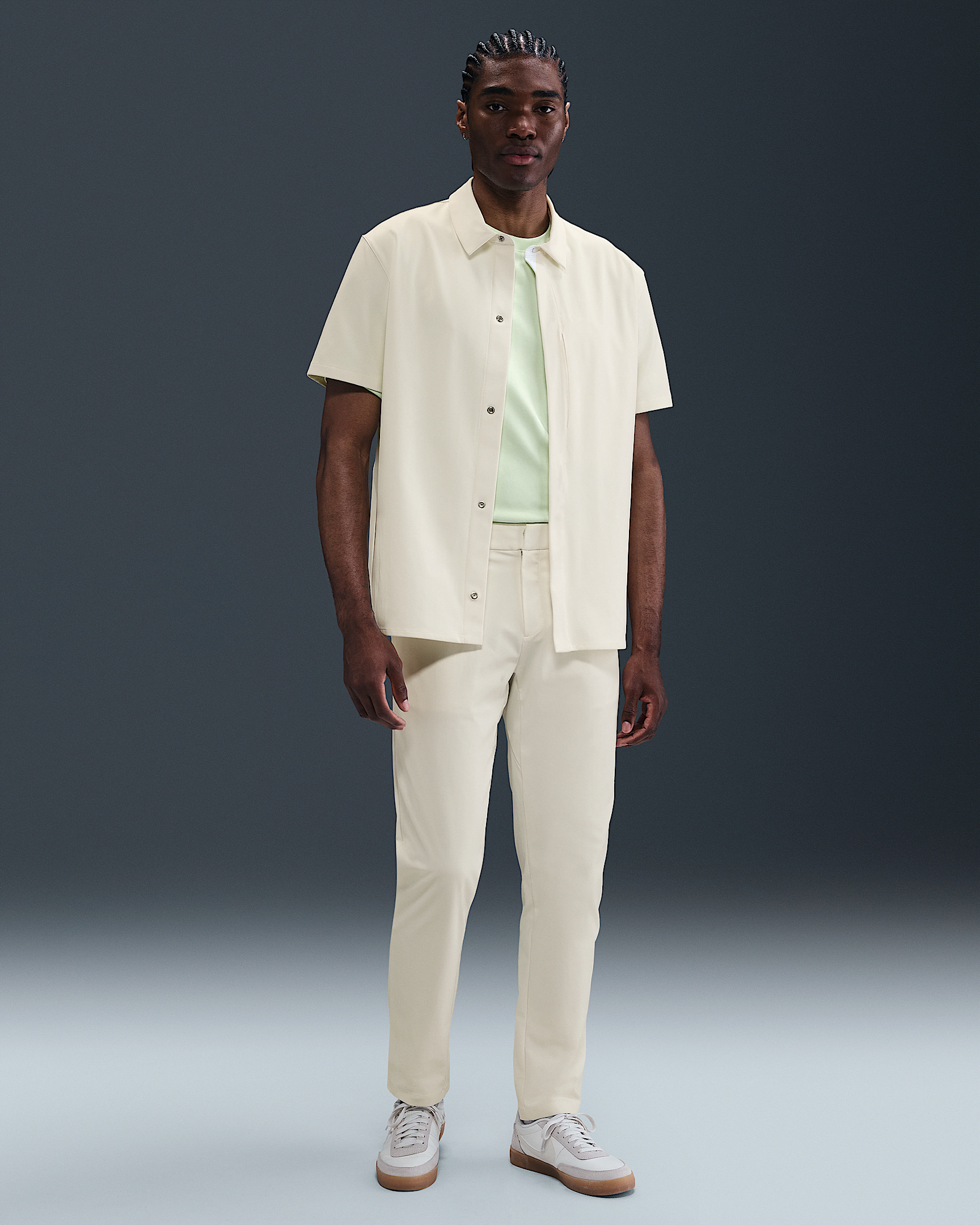 Made for all-day comfort, our PerfectStretch fabric has four-way stretch and a polished look. These tailored chinos put it to good use, adding plenty of storage and a locker loop for easy hanging. More Benefits - Elastic waistband and belt loops provide a secure fit. - This product provides UVA and UVB protection from the sun in the areas covered by the garment. To protect exposed areas, the use of good quality sunscreen is recommended. Product Details - Signature locker loop at wearer's left waistband seam - Bonded belt loops - Front zipper with hook-and-bar closure - Body: 100% polyester. Pocket bags: 86% polyester/14% spandex. - Machine wash - Imported - Shown: Sail/Sail/Light Bone - Style: HQ6918-133 SIZE & FIT Male model is wearing size M and is 6'2"188cm Sm fit: sleek and tailored