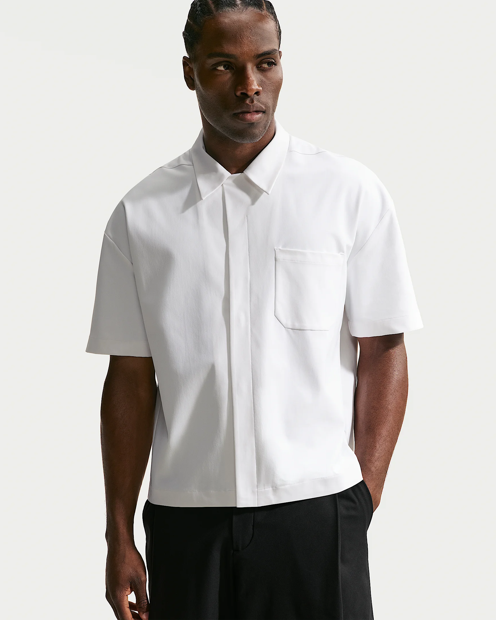 Made for all-day comfort, our PerfectStretch fabric has four-way stretch and a polished look. This roomy button-up shirt puts it to good use, adding a tailored fit and sweat-wicking support. Benefits - Nike Dri-FIT technology moves sweat away from your skin for quicker evaporation, helping you stay dry and comfortable. - This product provides UVA and UVB protection from the sun in the areas covered by the garment. To protect exposed areas, the use of good quality sunscreen is recommended. Product Details - Signature locker loop on back collar - Chest pocket - 100% polyester - Machine wash - Imported - Shown: White/Sail/Photon Dust - Style: IF2734-100 SIZE & FIT Model is wearing size M and is 6′4″192cm Loose fit: roomy and relaxed