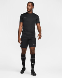 Built for soccer training, this Academy top feels ultralight and cool, with side mesh panels for extra airflow. Its slim fit gives a distraction-free feel as you push the pace through every drill and scrimmage. Benefits - Nike Dri-FIT technology moves sweat away from your skin for quicker evaporation, helping you stay dry and comfortable. - Smooth knit fabric feels light and cool. - Mesh side and back panels provide extra breathability. Product Details - Embroidered Swoosh logo - Body: 100% polyester. Mesh: 100% polyester. - Machine wash - Imported - Shown: Black/Black/White/White - Style: HJ3791-010 SIZE & FIT Model is wearing size M and is 6′2″188cm Sm fit: sleek and tailored
