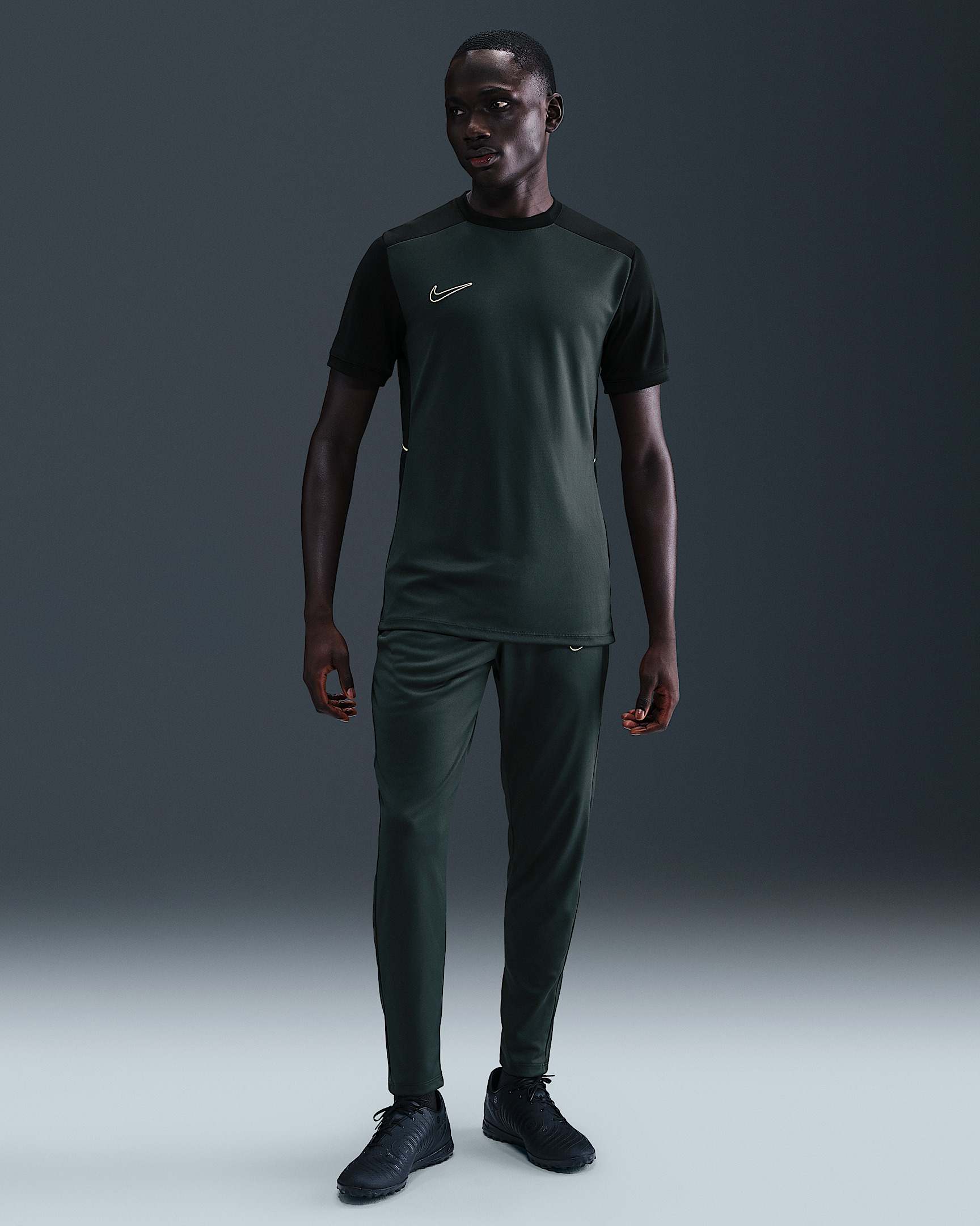 Built for soccer training, these smooth knit pants wick away sweat to help you stay focused on the field. The slim fit and zippered cuffs create a distraction-free feel as you push the pace through each drill and scrimmage. Benefits - Nike Dri-FIT technology moves sweat away from your skin for quicker evaporation, helping you stay dry and comfortable. - Smooth knit fabric feels light and breathable. - Mesh side panels create extra airflow. - Zippered pockets provide secure storage. - Zippered cuffs help make the pants easy to take on and off. Product Details - Elastic waistband with drawcord - Embroidered Swoosh logo - Body/Mesh: 100% polyester - Machine wash - Imported - Shown: Seaweed/Black/Limelight - Style: HJ3776-390 SIZE & FIT Model is wearing size M and is 6′1″184cm Standard fit: easy and traditional