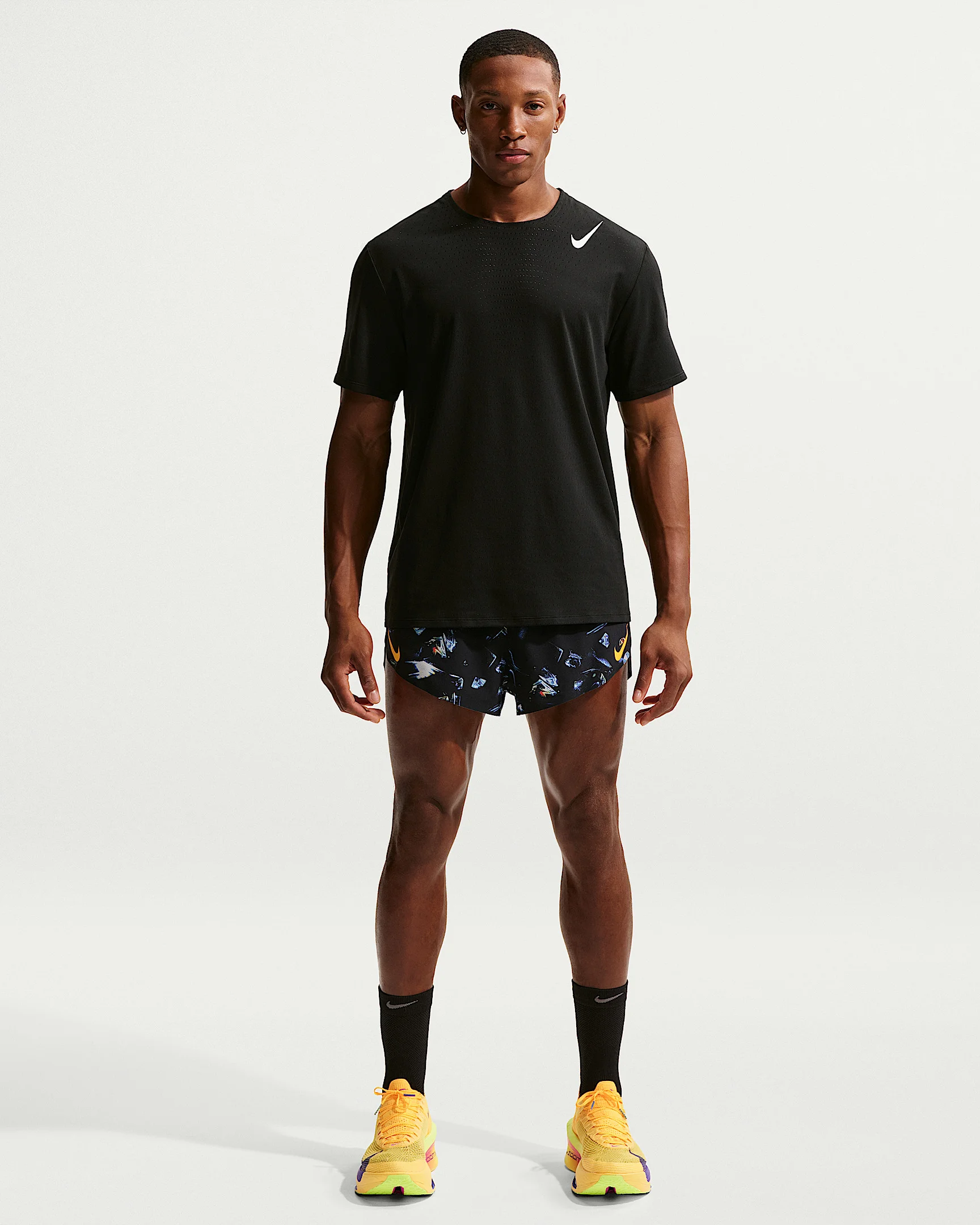 Inspired by the diamond trophy, these sweat-wicking shorts were made to race. Built with breathability features and stretch-woven fabric that moves with you, they help keep you dry and cool through the finish line. More Benefits - Swoosh logos have a nonreflective finish that doesn't catch flashes from photography during the race. - Zippered back pocket fits most phones. Product Details - 2" inseam - Brief-lined - Drawcord - Body: 88% polyester/12% spandex. Elastic: 73% nylon/27% spandex. Lining: 89% polyester/11% spandex. - Machine wash - Imported - Shown: Black/Laser Orange - Style: IF2068-010 SIZE & FIT Model is wearing size M and is 5′11″179cm Standard fit: easy and traditional