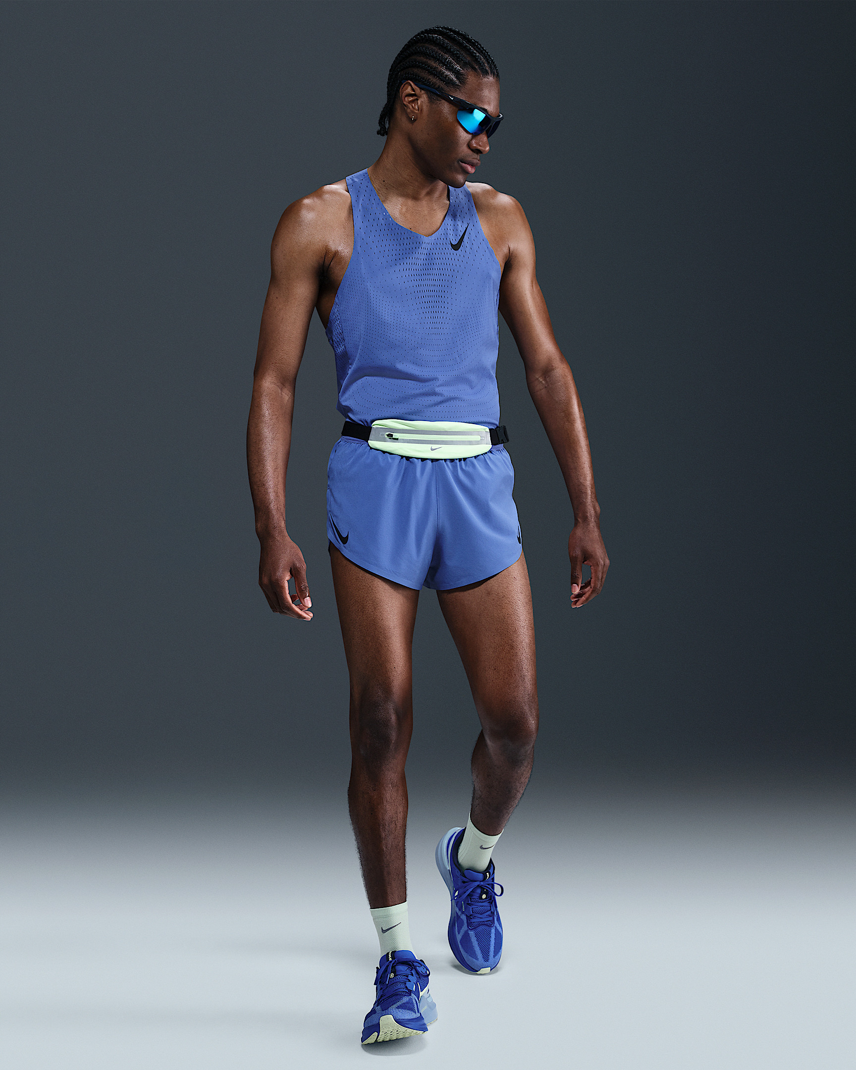 Designed for racing, the 2" AeroSwift shorts help you push through the worst to compete with the best. Their lightweight woven material helps keep the sweat off with every mile and a knit liner gives the support you need. 4 drop-in pockets give a place to stash your gels, snacks and other race-day essentials. More Benefits - Designed for Racing - Length: 2" - Liner: Knit liner - Fabric: Lightweight woven - Storage: Drop-in pockets and zippered back pocket - Waistband: Elastic with drawcord Product Details - Body: 88% polyester/12% spandex. Elastic: 73% nylon/27% spandex. Lining: 89% polyester/11% spandex. - Machine wash - Imported - Not intended for use as Personal Protective Equipment (PPE) - Shown: Comet Blue/Black - Style: FN3349-411 SIZE & FIT Model is wearing size M and is 6′2″188cm Standard fit: easy and traditional